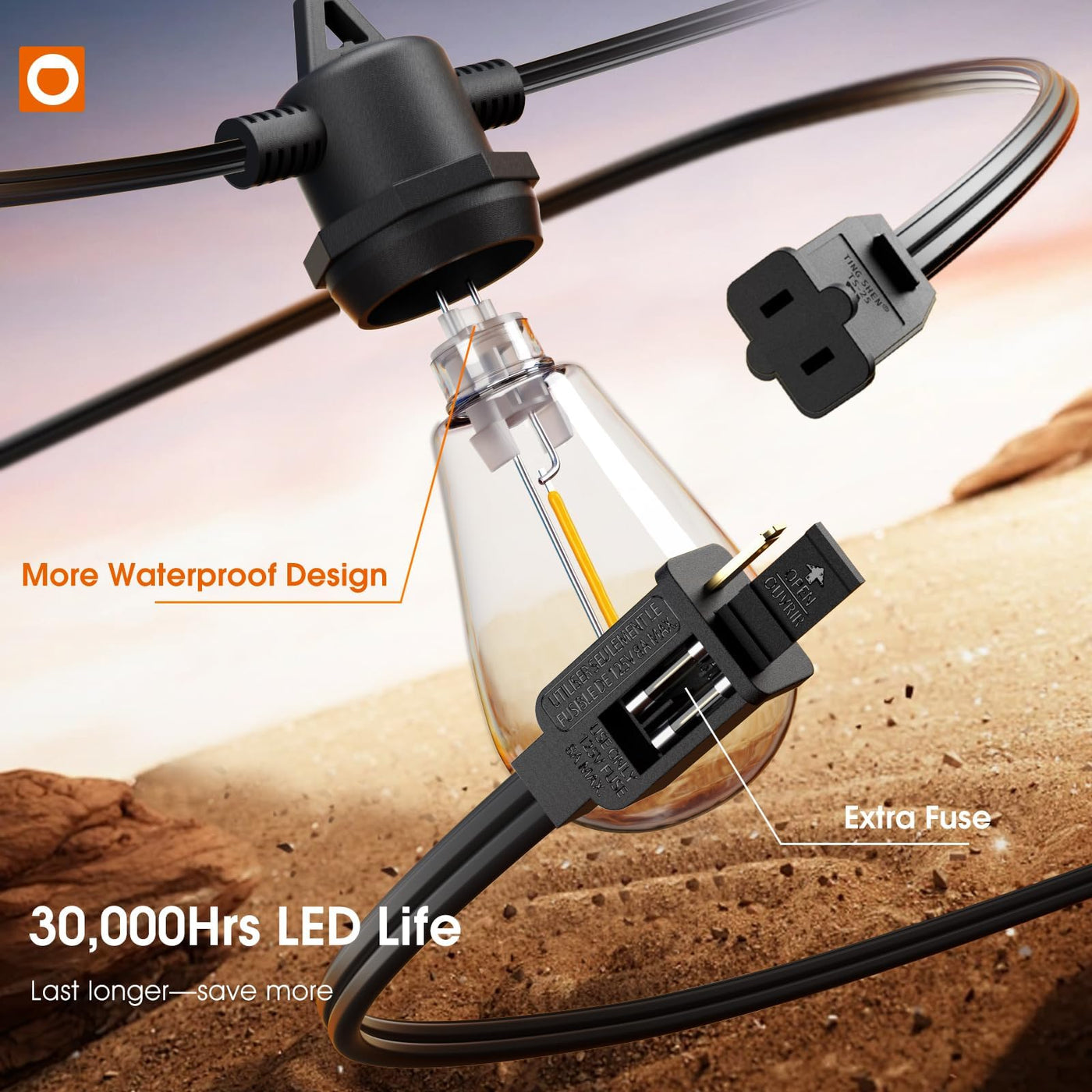 Q: What is the length and number of sockets in the addlon outdoor string lights?A: The addlon outdoor string lights are 150FT long and feature 75 sockets, providing ample coverage for your patio, garden, or deck.