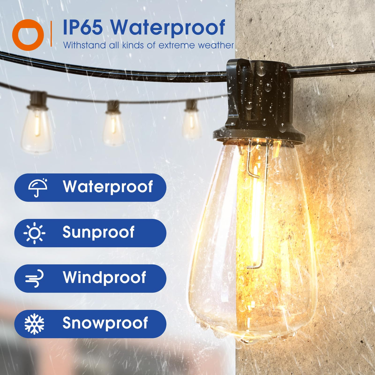 Addlon 150 Ft (3X50Ft) Outdoor String Lights,Waterproof Patio Lights Ul Listed With 45+3 Shatterproof Dimmable St38 Led Bulbs,2700K Connectable Outdoor Lighting