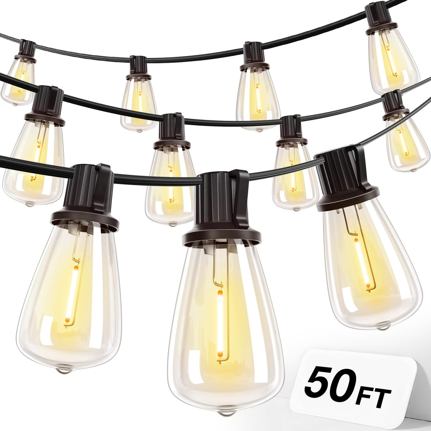 Addlon 50Ft Led Outdoor String Lights With 16 Shatterproof St38 Bulbs, Vintage Edison Style Patio Lights , Connectable & Waterproof Outside Hanging Lights For Porch, Garden, Backyard, Balcony