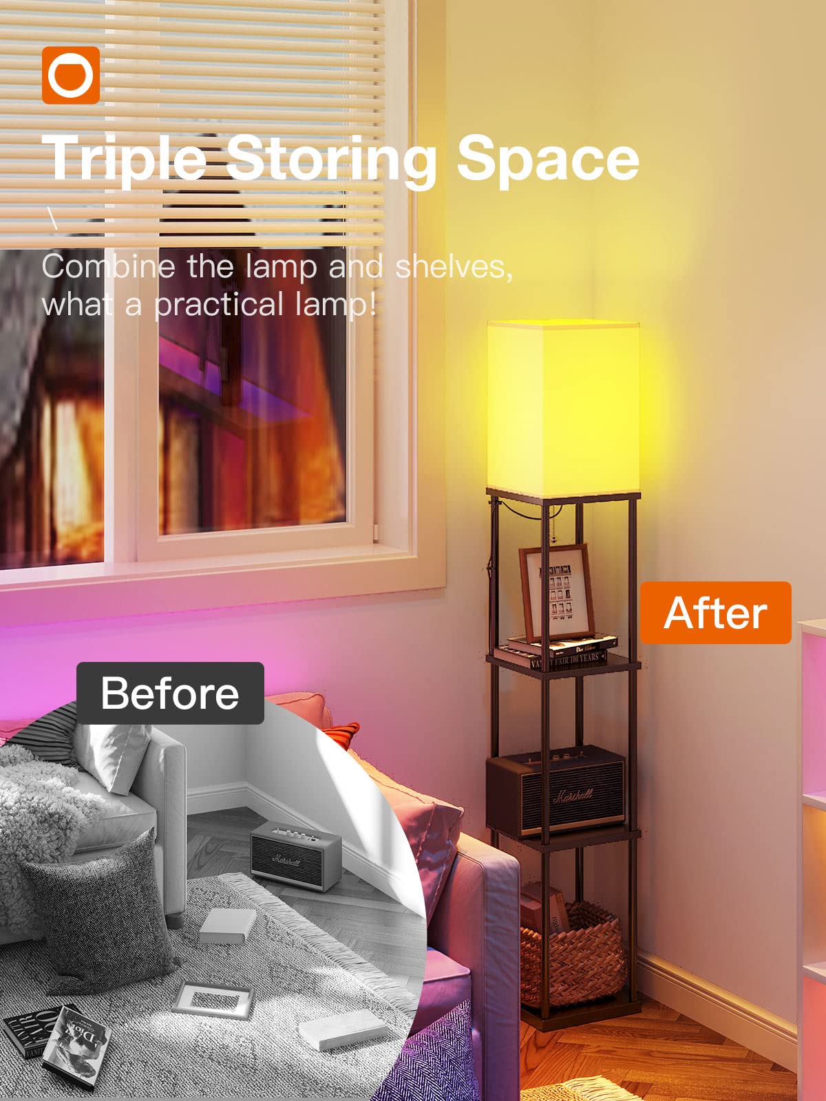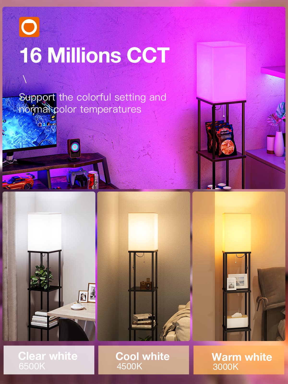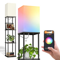 Addlon Floor Lamp With Shelves, 4-Tier Modern Shelf Lamp With Rgb Smart Bulb, App Control Standing Lamp With White Lamp Shade, F