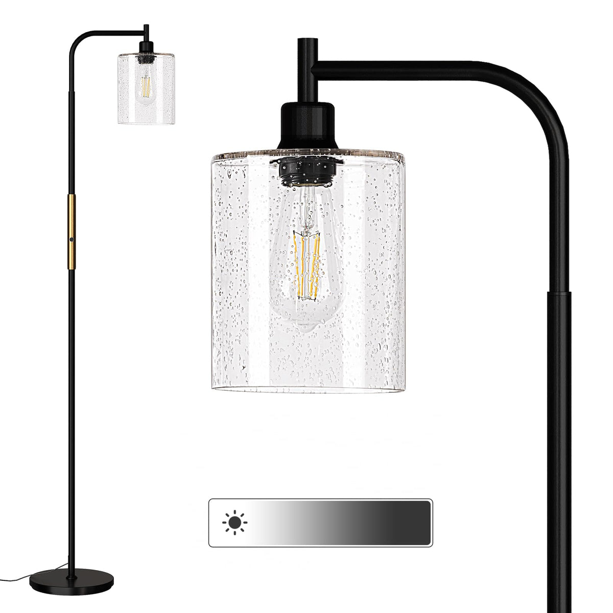 Addlon Floor Lamps For Living Room With Seeded Glass Shade, Dimmable Floor Lamp Industrial Lamp With Bright Led Bulb, Standing L