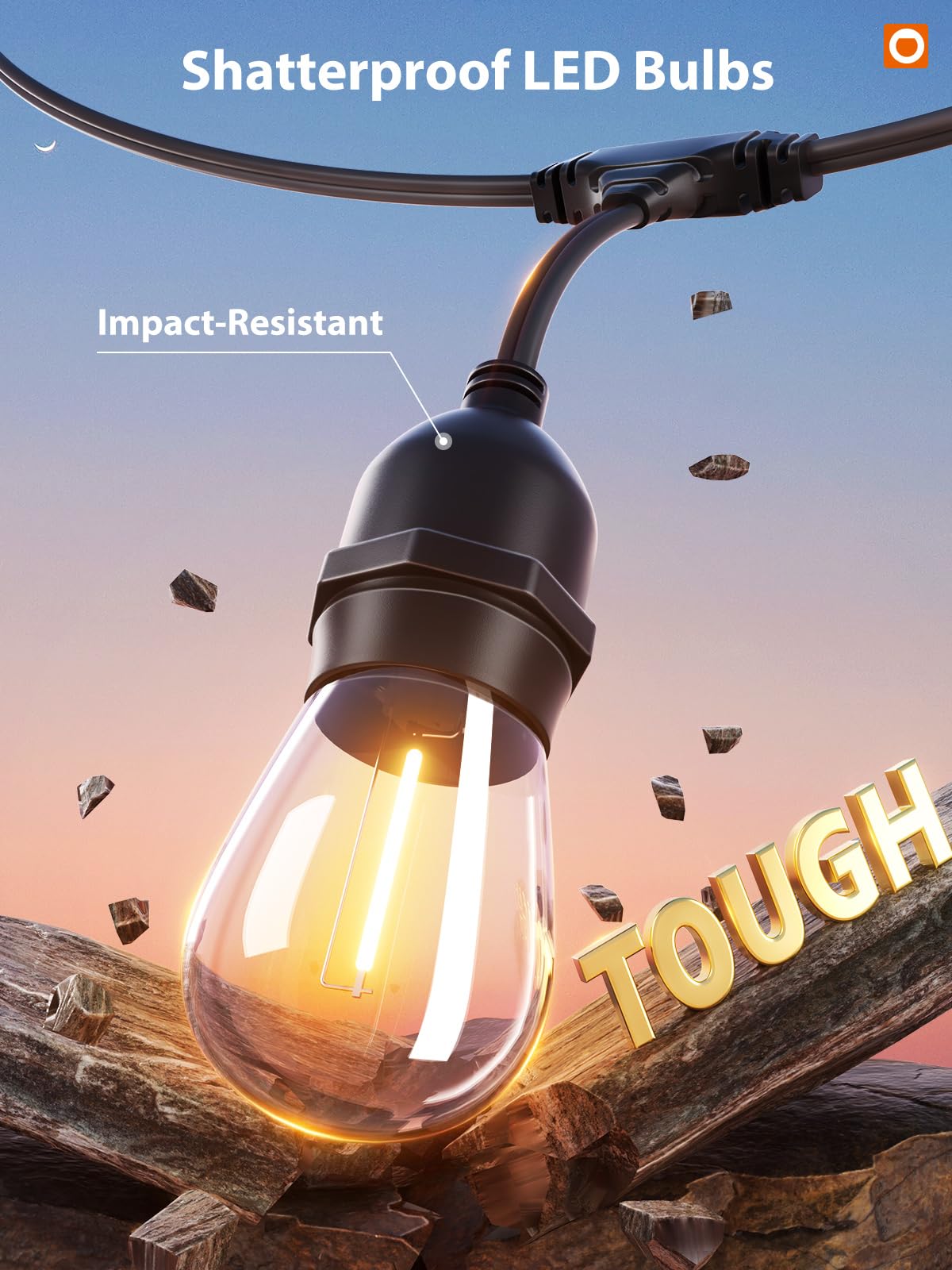 Addlon Outdoor String Lights Timer Control, 48Ft Led Patio Lights With Edison Vintage Shatterproof Bulbs And Commercial Grade We
