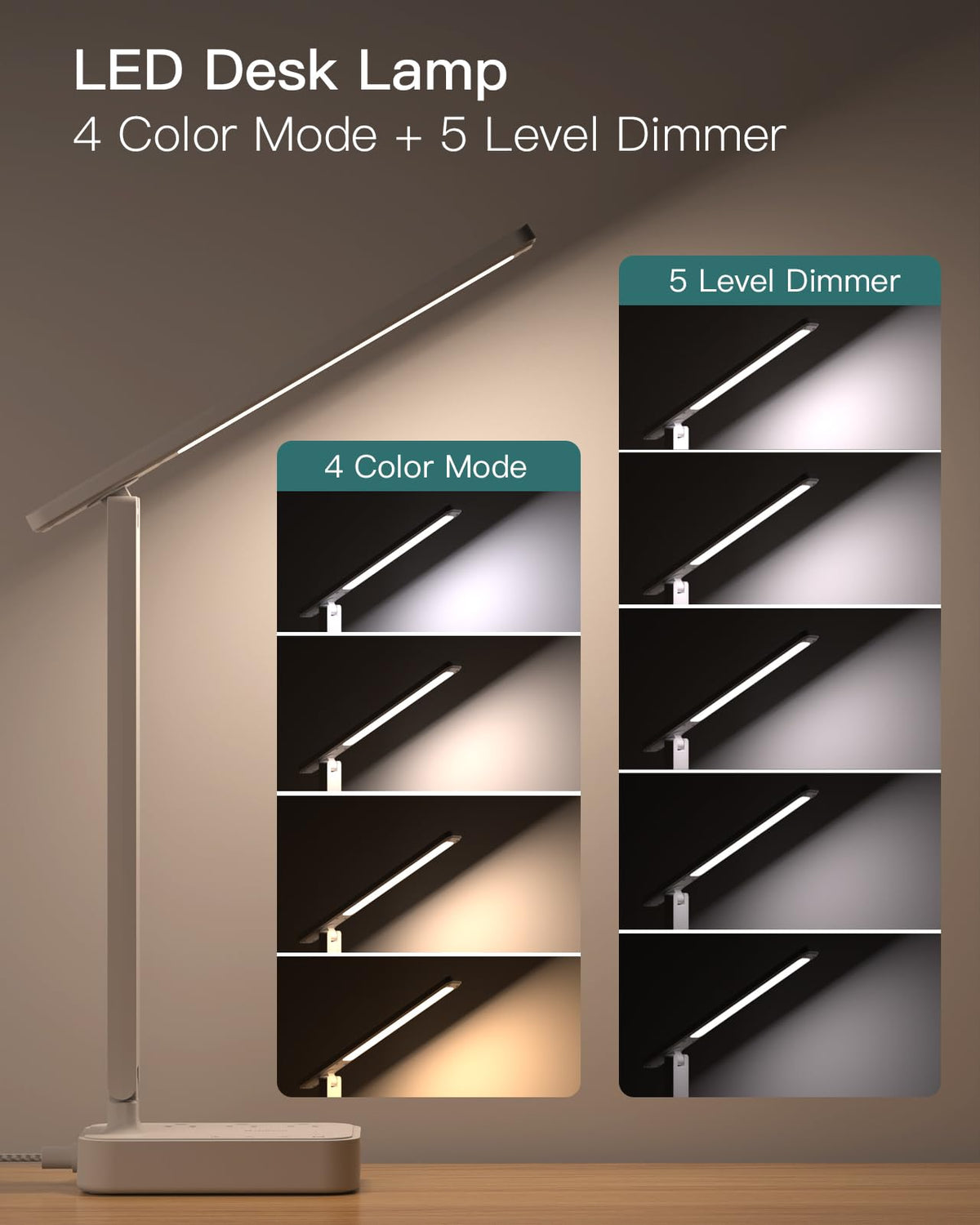 Addtam Led Desk Lamp, Power Strip With 3 Outlets 4 Usb Charging Ports(2 Usbc), 4 Modes 5 Level Brightness Touch Lamp, Small Desk
