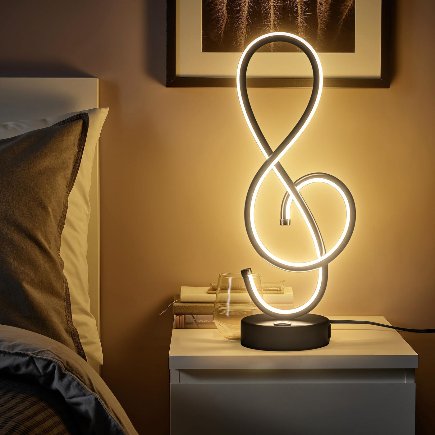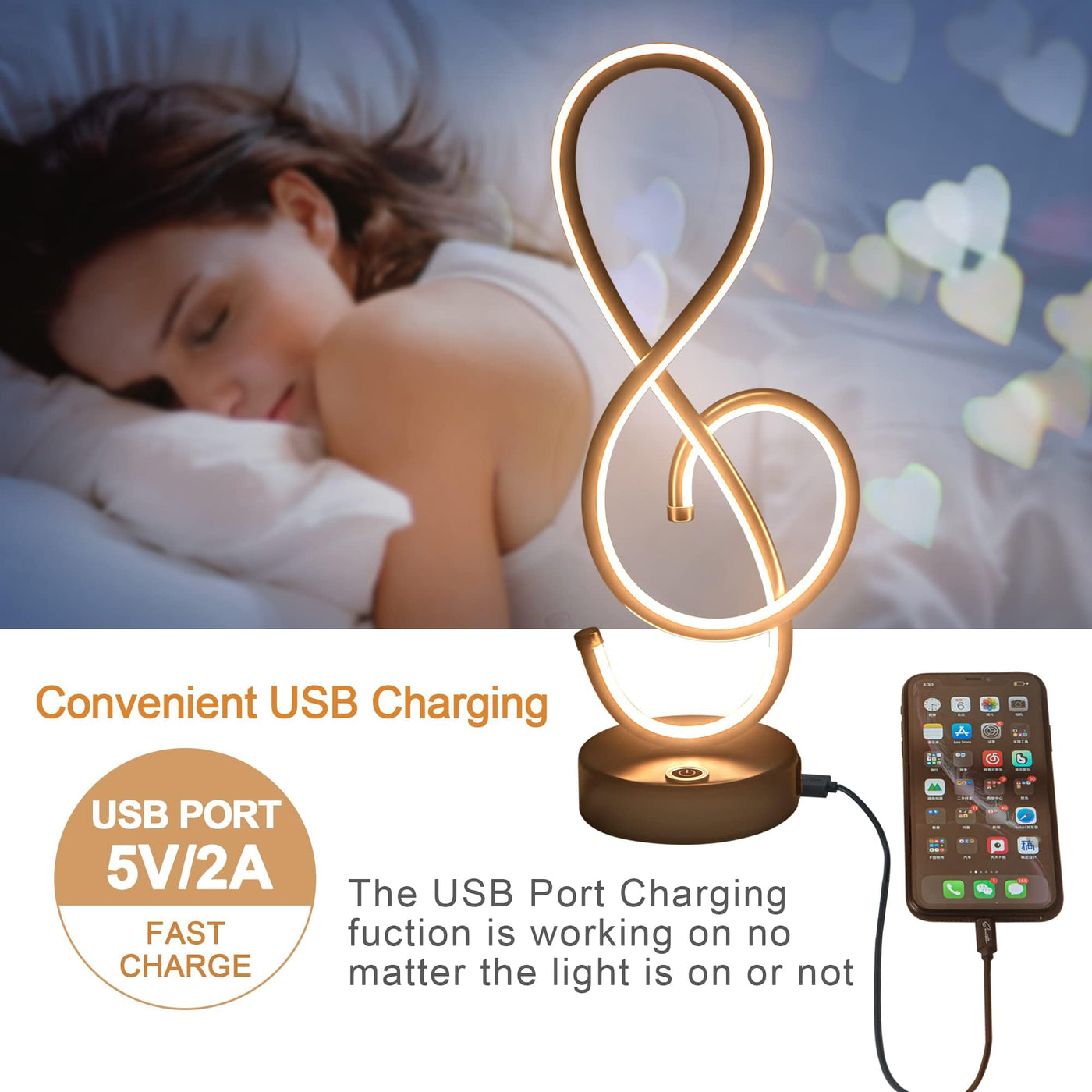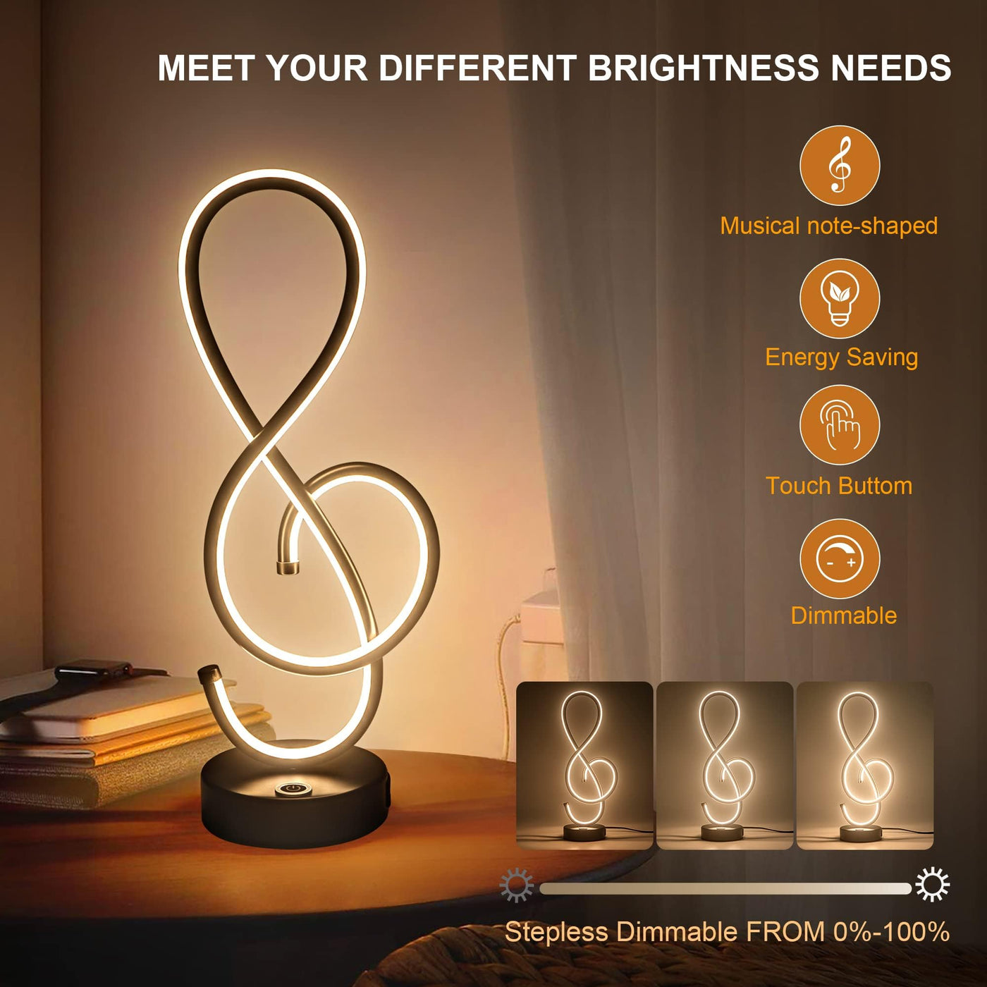 Adebime Modern Table Lamp, Led Bedside Lamp With Usb Port, Touch Stepless Dimmable Nightstand Light, Unique Musical Note Design,