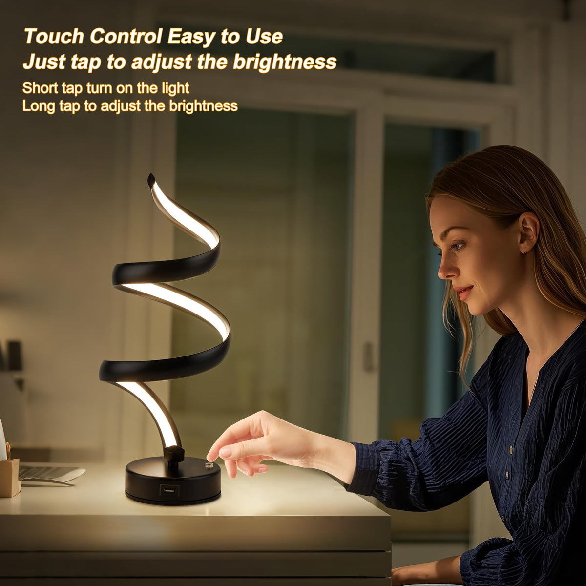 Adebime Spiral Led Lamp - Touch-Controlled Dimmable Table Light, Warm White For Bedrooms, Living Rooms, And Offices, Black