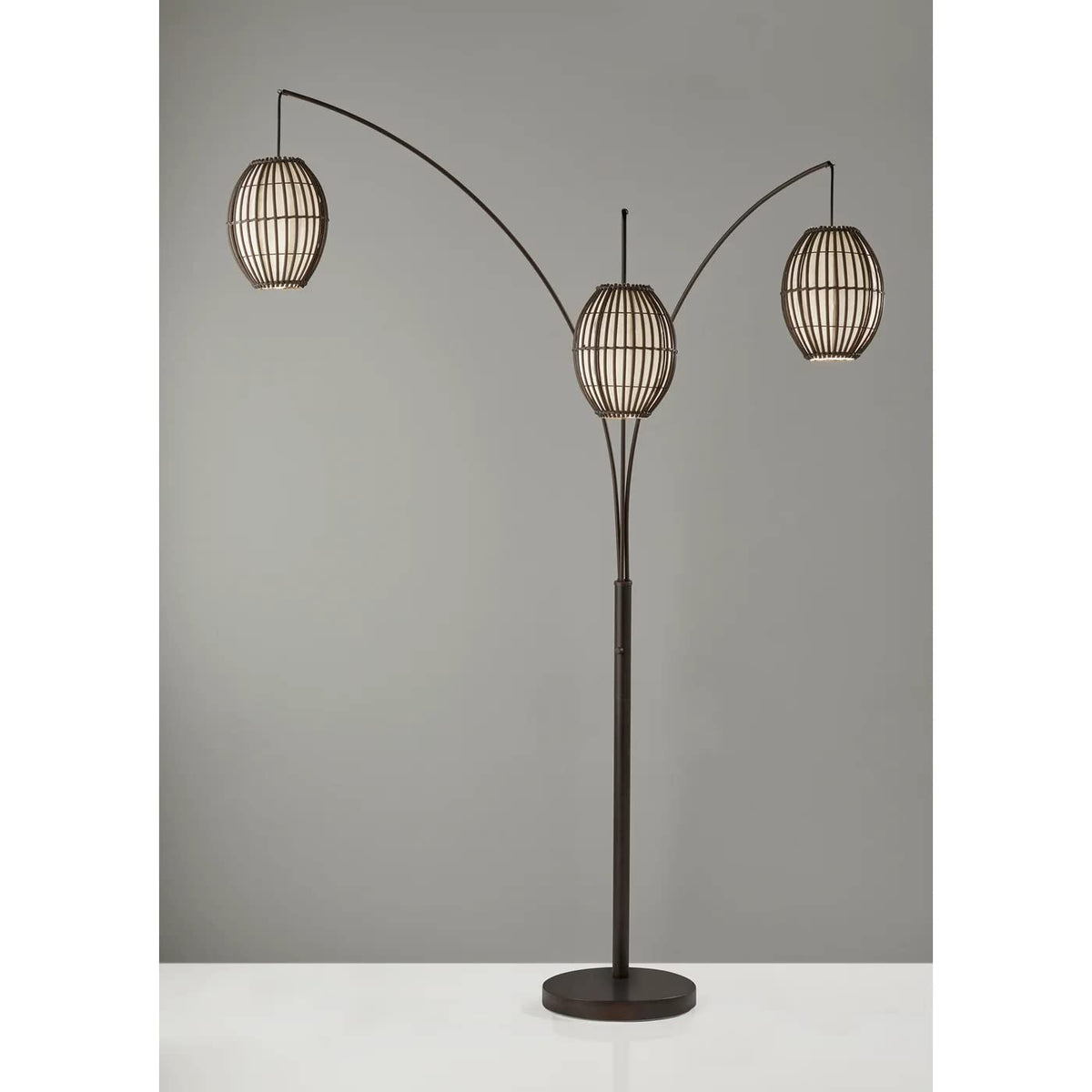 The Maui Arc Lamp Is The Perfect Solution For Illumination Around The Urban-Inspired Sectional Or Any Living Space With A Natural Vibe. Three Barrel-Shaped Lanterns Are Composed Of Brown Cane Sticks And Lined With A Fabric-Like White Rice Paper To Diffuse The Light From Three 60W Incandescent Or Cfl Equivalents (Not Included With The Product), Creating Efficient Overhead Mood Lighting. This Floor Light Has An Antique Bronze Finish And A Simple On/Off Rotary Switch Located On The Pole. This Lamp Is Smart Outlet Compatible.