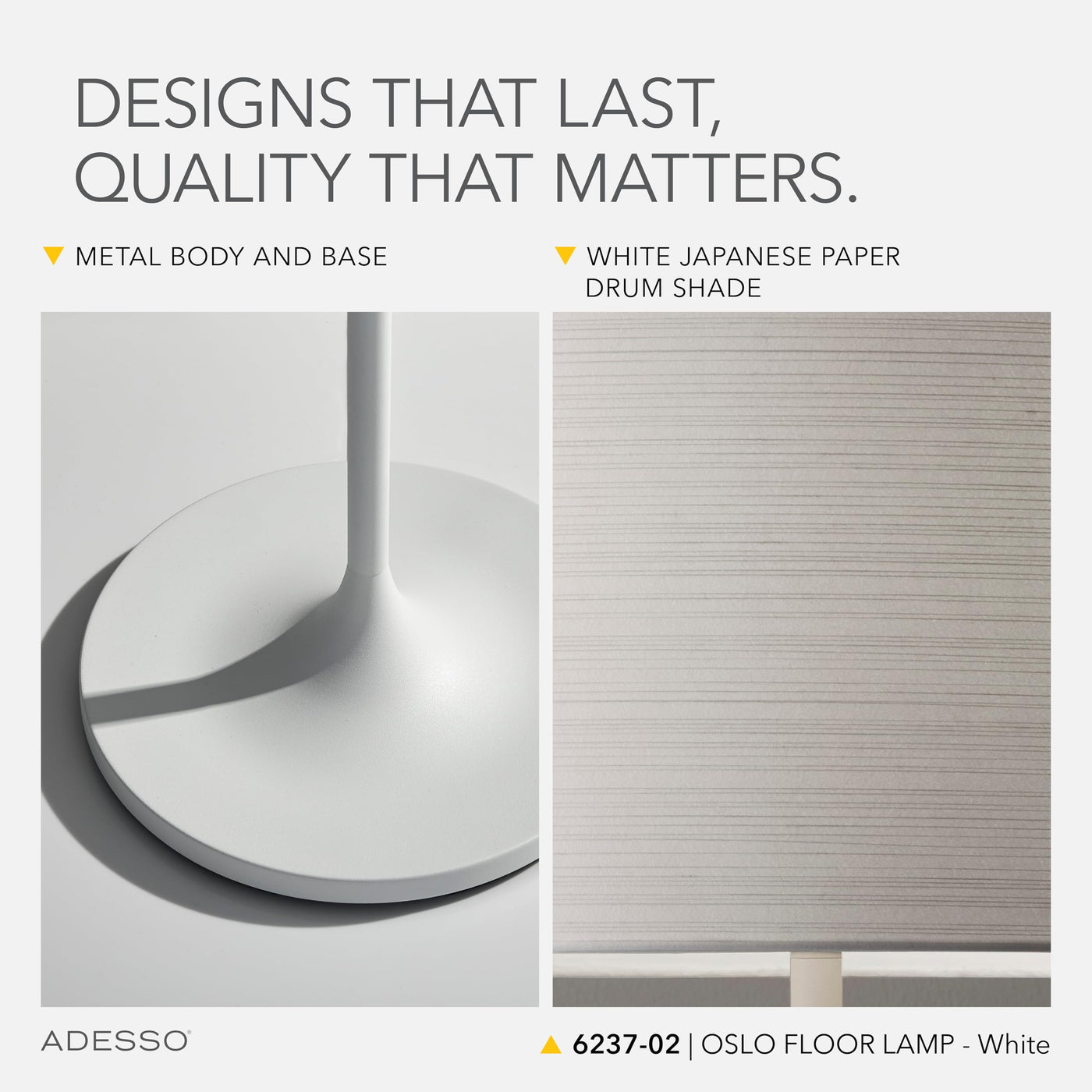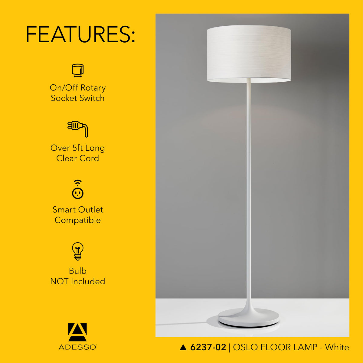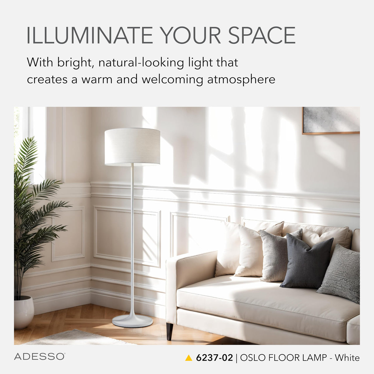 Adesso 6237-02 Oslo Floor Lamp - Corrosion Resistant, Scratch Proof, White Matte Finish Lighting Equipment With Metal Body. Tool