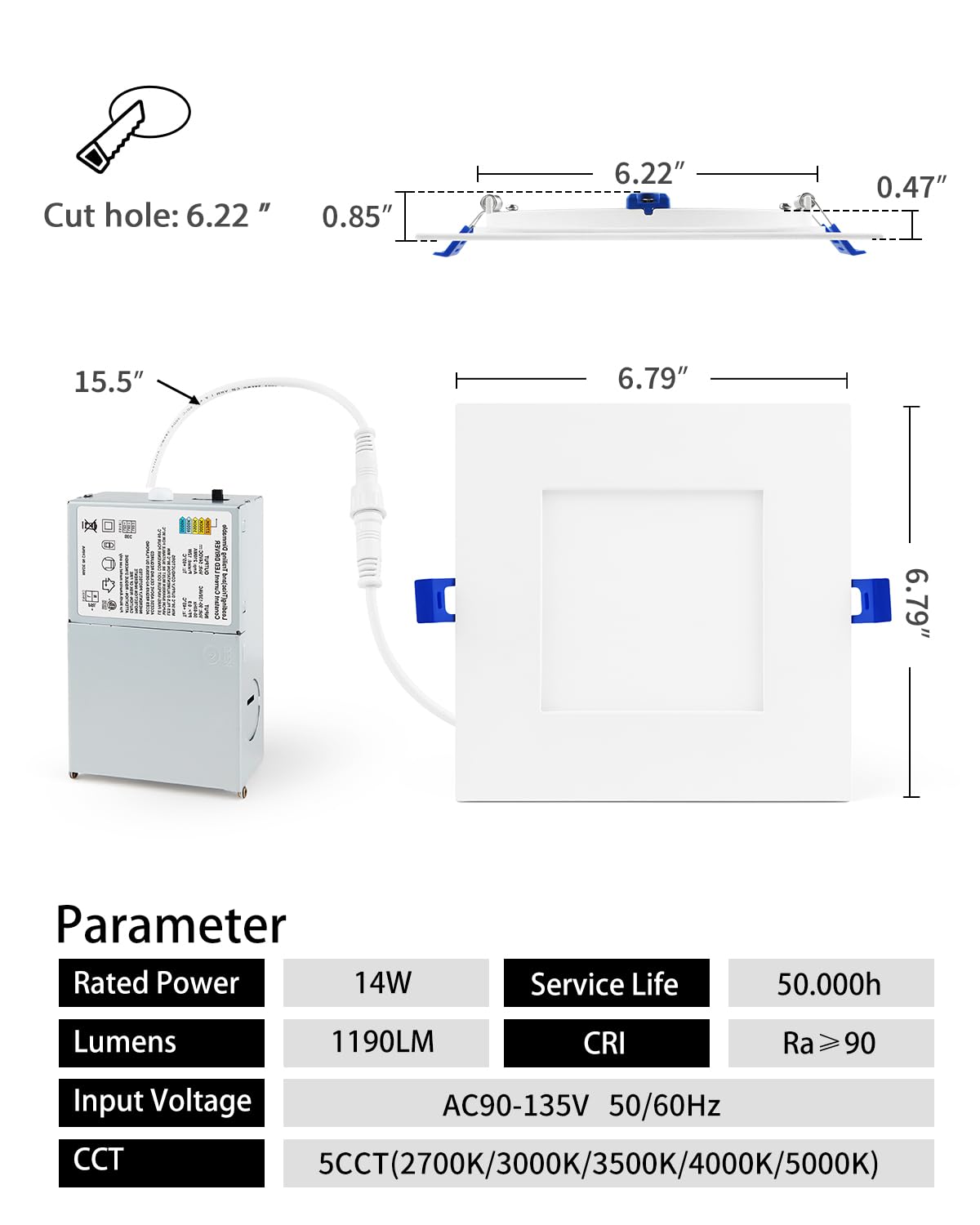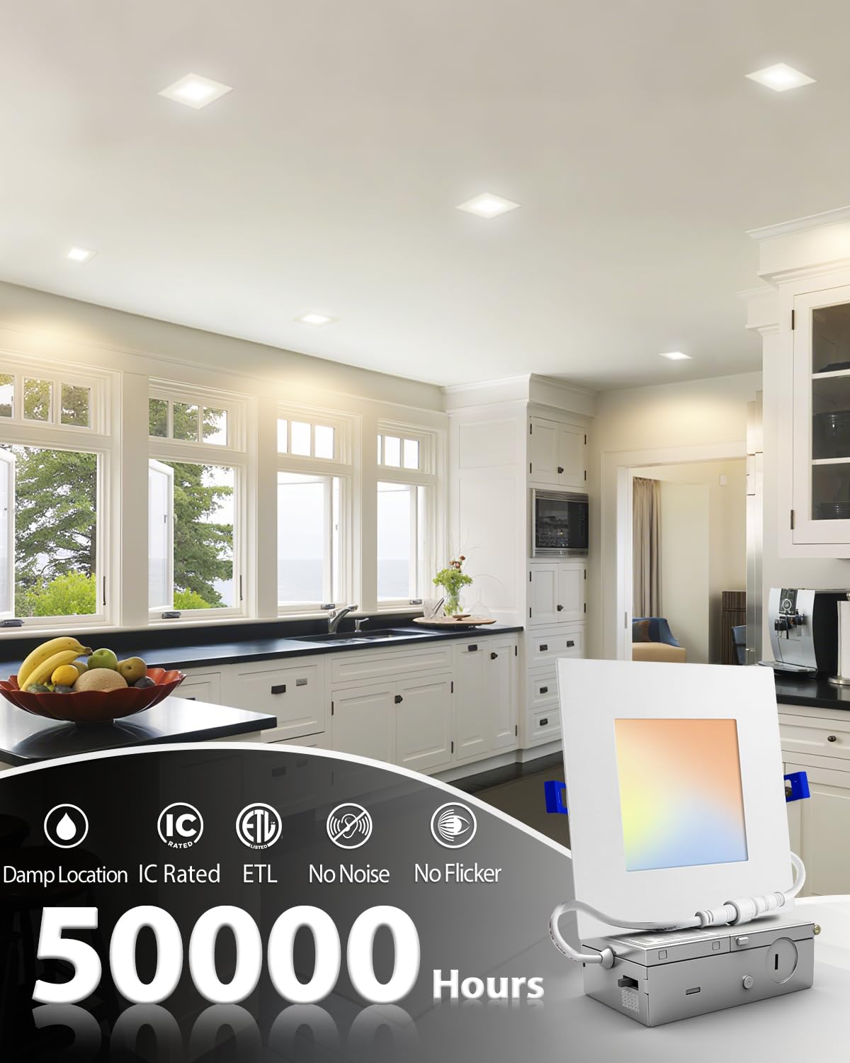 Adetu 12 Pack 6 Inch Square Led Recessed Lighting 5Cct Ultra Thin Square Led Ceiling Light With Junction Box 14W 1190Lm Cri90 2700K-5000K Selectable Dimmable Canless Downlight Etl And Energy Star