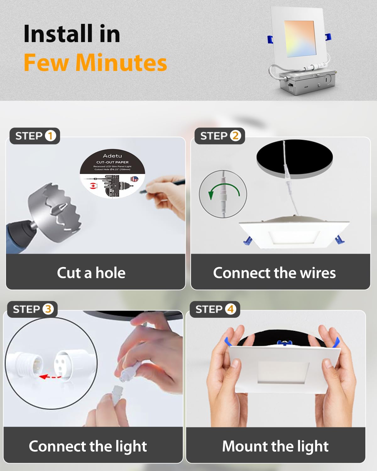 Make Your Home The Perfect Abode Whether Moving Into A New Home Remodeling Or Simply Updating Lights Proper Lighting Plays A Huge Role In Elevating The Appearance Of Your Home. At Adetu We Make Choosing The Perfect Light Easy With Our 6-Inch Led Light. It Can Fit In Dark Spaces That Need Creative Lighting. Also Ideal For Replacing Existing Lighting For Impressive Modern Benefits. Wet Rated For Bathroom Adetu Ultra-Thin Led Light Is Wet-Rated So It Is Safe For Use In Areas That Contain Higher Moisture Such As The Kitchen And Bathroom This Is A Safety Feature Not Included In Most Other Lights. Just What You Need For Over The Tub Improved Lighting Over Mirrors And Anywhere You Want A Compact Space-Saving Design. No Wonder Electricians And Contractors Everywhere Prefer Recessed Lights. The Light Is Ic Rated Making It Safe For Use With Insulation. Connect The Wires Safely In The Included Junction Box Using The Ul Certified Ul Wire Connectors. Use The Spring Clip To Attach To The Ceiling. Diy Enthusiasts Can Complete The Job In Just Minutes. This Can Fit In As Little As 2 Inches Of Ceiling Space For A Wide Variety Of Ceiling And Joist Configurations.