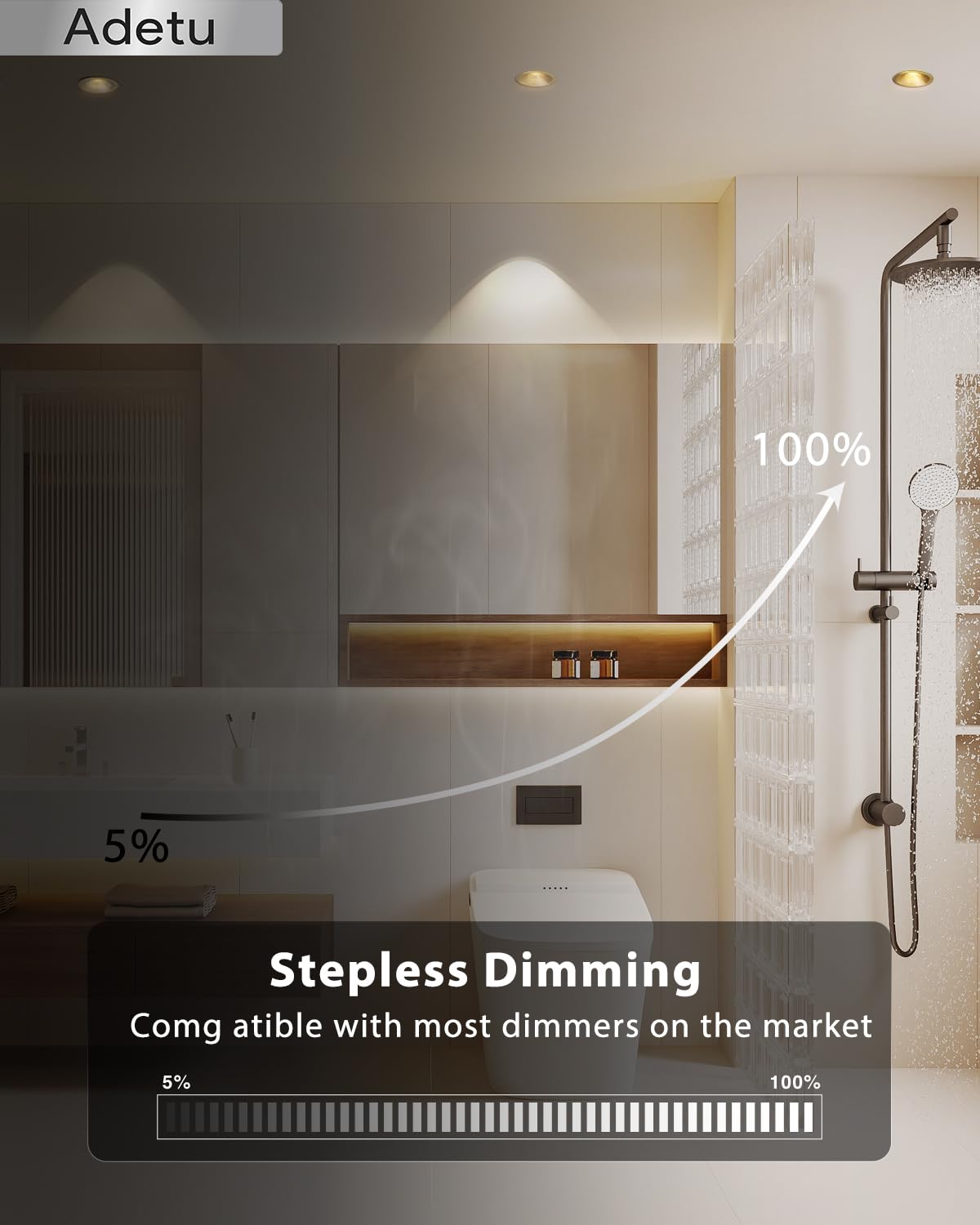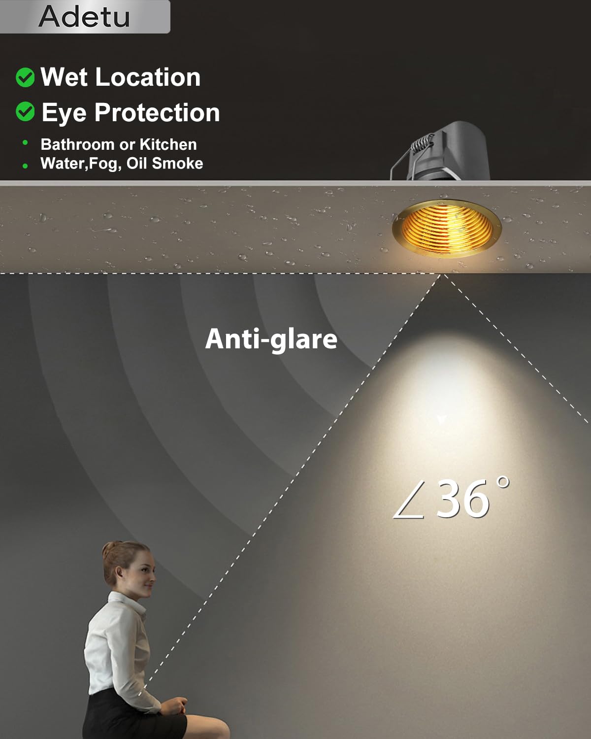 Adetu 2 Inch 5Cct Gold Led Recessed Ceiling Light With Junction Box, 2700K/3000K/4000K/50000K Selectable, Cri90, 8W Cob, 780Lm,