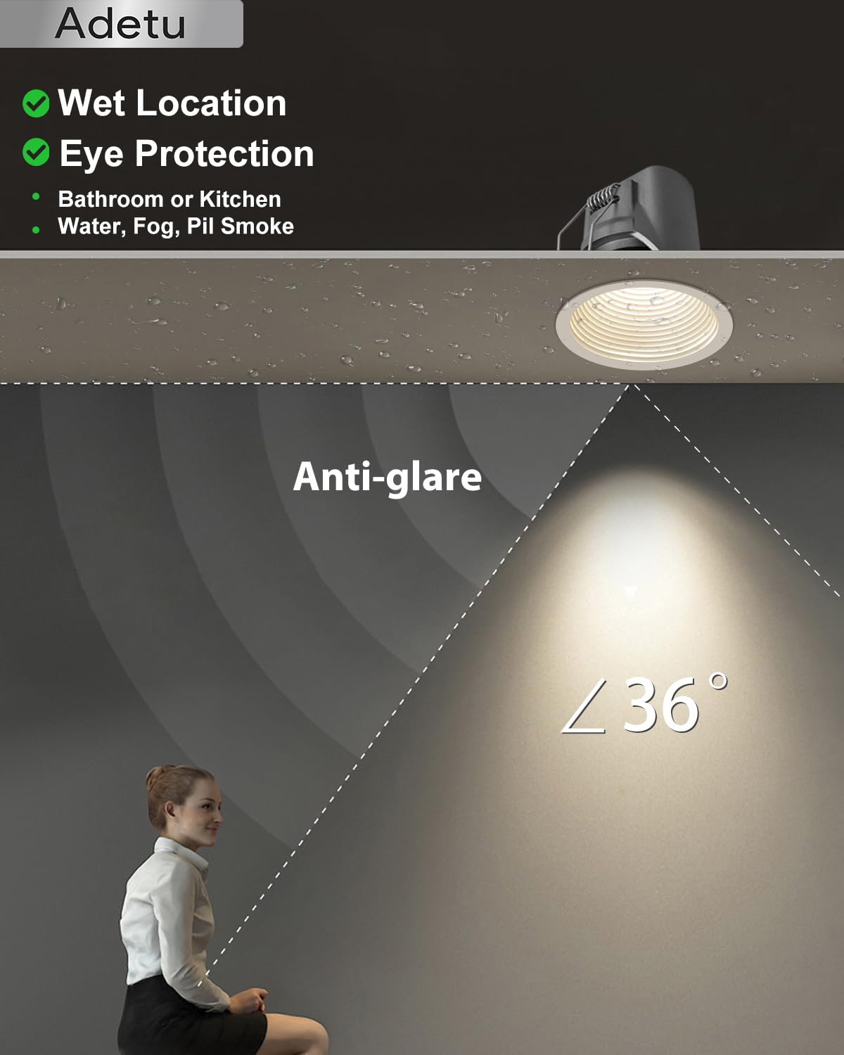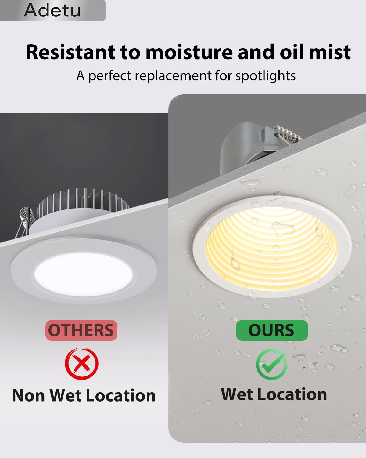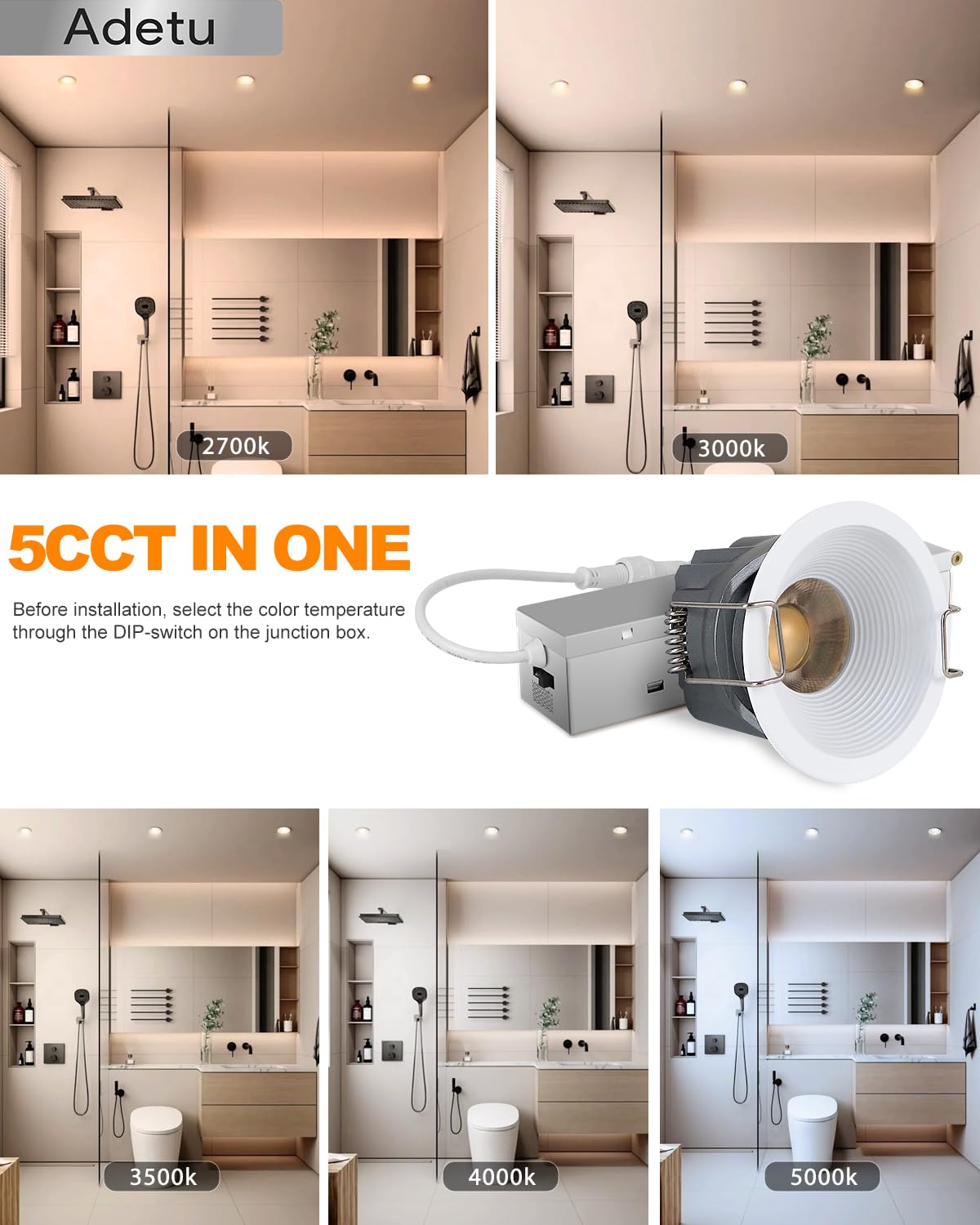 Adetu 2 Inch 5Cct White Led Recessed Ceiling Light With Junction Box, 2700K/3000K/4000K/50000K Selectable, Cri90, 8W Cob, 780Lm,