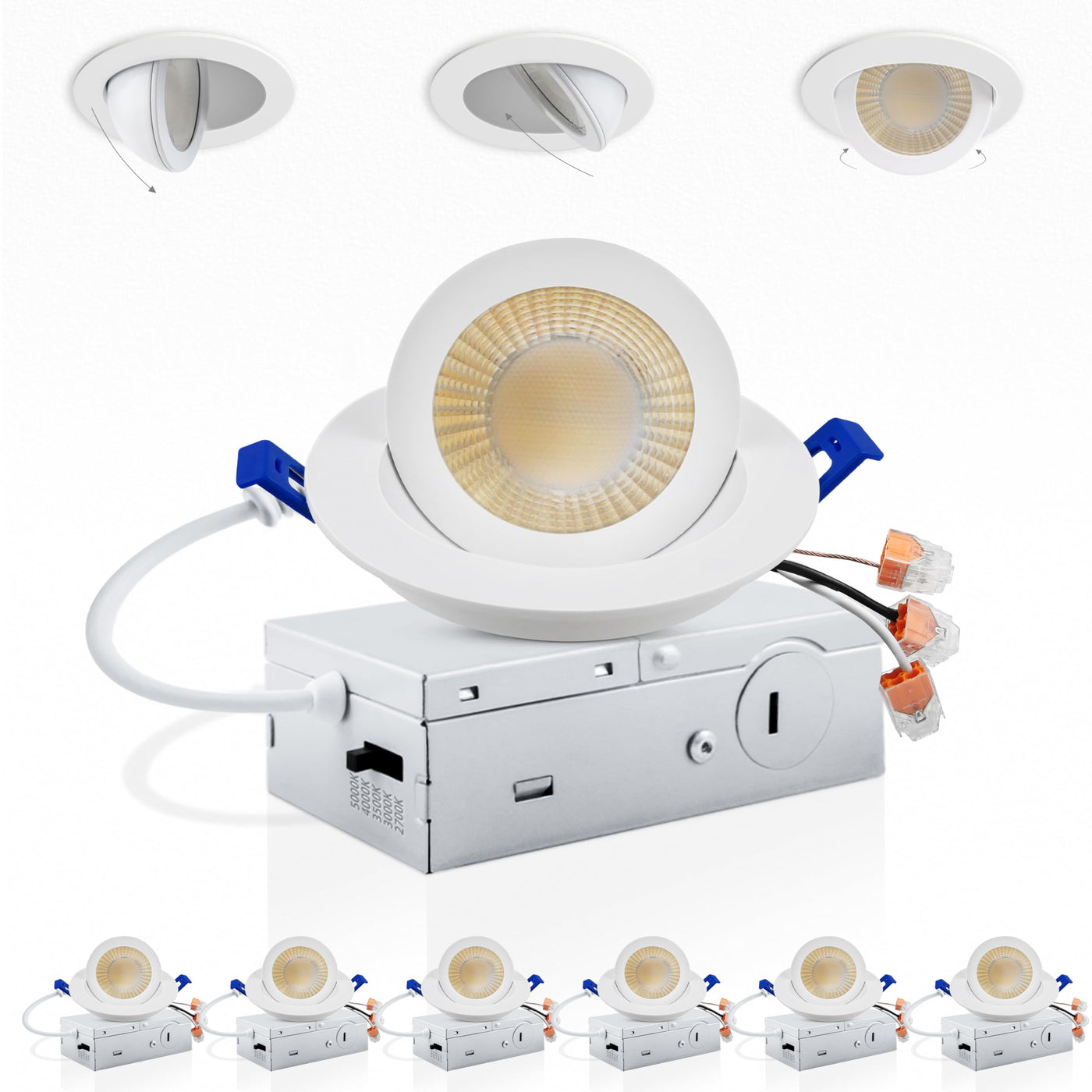 Adetu 3 Inch 5Cct Gimbal Led Recessed Lighting With Junction Box, 2700K/3000K/3500K/4000K/5000K Selectable, 7W Eqv 80W, 360+90 A