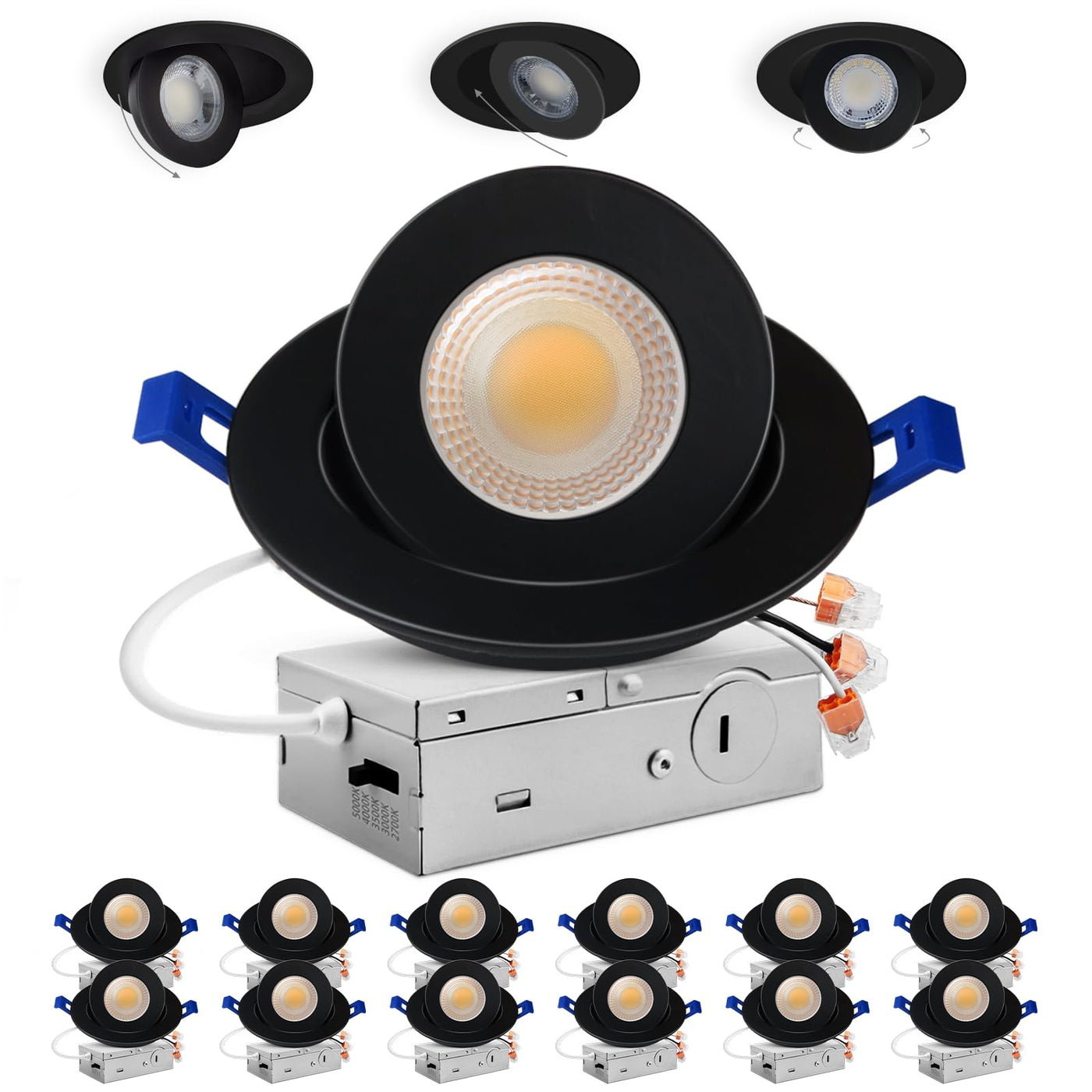 Adetu 4 Inch 5Cct Gimbal Black Led Recessed Lights, 360+90 Adjustable Directional Recessed Lighting, 2700K-5000K Dimmable Retrof