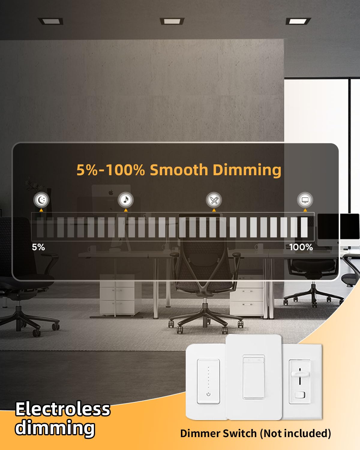 Q: Is the Adetu 6 inch Square Led Recessed Lighting suitable for damp locations?A: Yes, the Adetu Square Led Ceiling Light is designed for damp locations and is compatible with most dimmers, making it ideal for various applications including kitchens, bathrooms, and outdoor soffits.