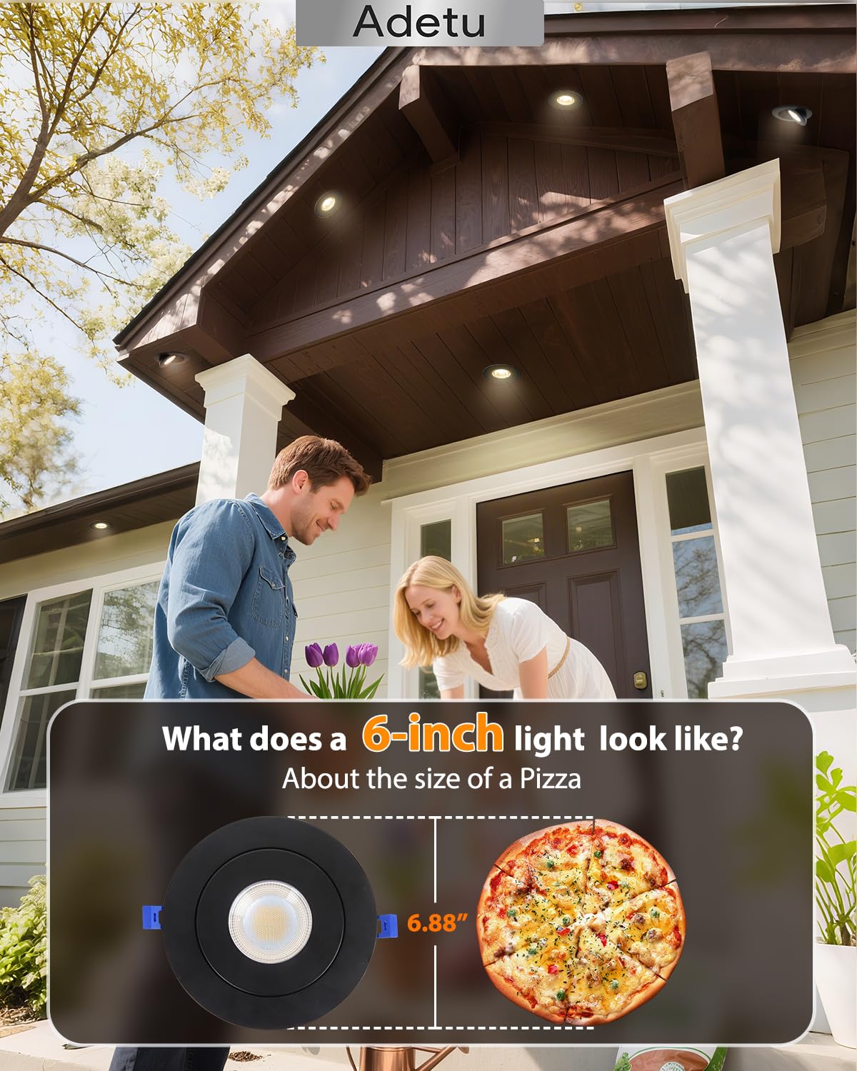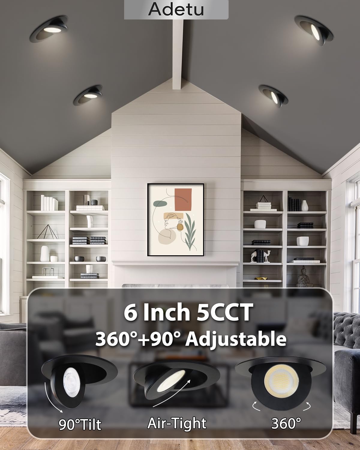 Adetu Led Recessed Lighting 6 Inch 360?90?Adjustable Directional Gimbal 6 Inch Led Recessed Light 2700K-5000K 5Cct Dimmable Retrofit Eyeball Can Recessed Lights With Jbox Et (Black 6 Pack)