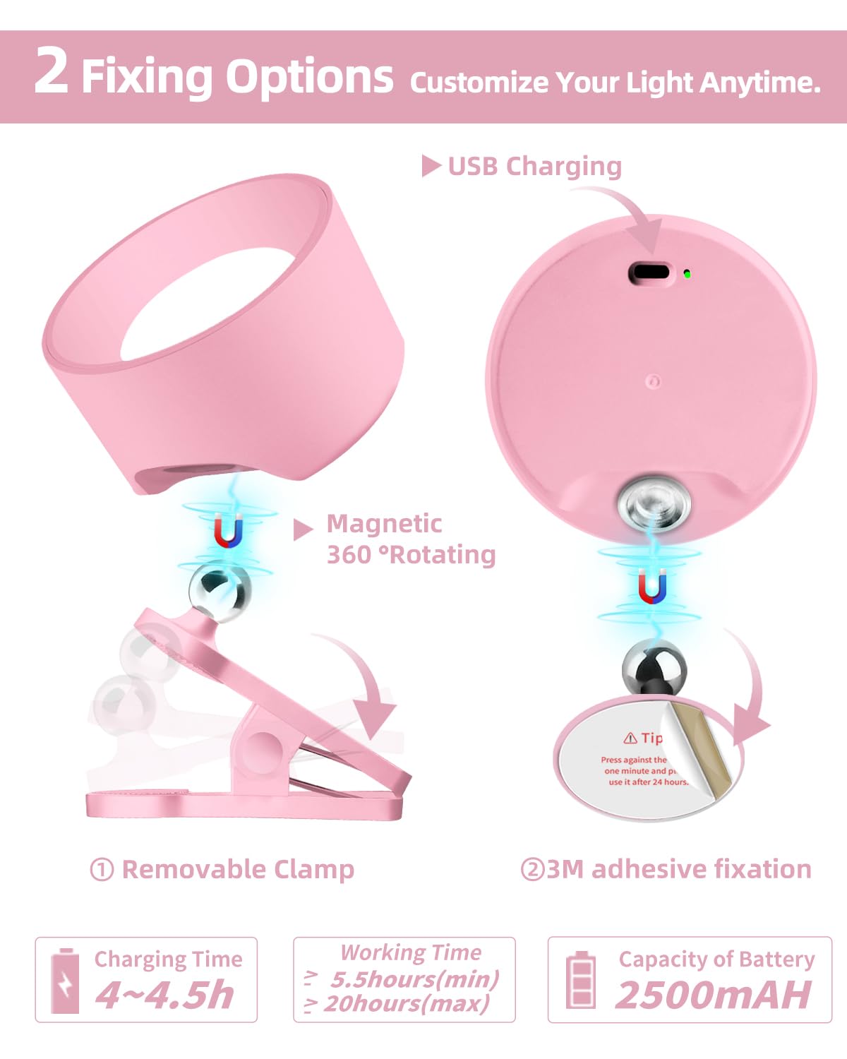 Introducing our versatile LED Wall Mounted Lights 2-set, designed to elevate your lighting experience with convenience and flexibility. These sconces lamps feature a powerful 2500mAh rechargeable battery, ensuring uninterrupted illumination for your bedroom bedside, kids' study area, or even hallway. With 3 color temperatures and dimmable settings, you can easily adjust the lighting to suit your mood or activity. The magnetic 360 rotation allows you to effortlessly position the lights for optimal coverage, whether they're mounted on the wall using the magnetic base or clamped onto various surfaces using the removable clamp. These cordless LED lights also come equipped with USB ports, offering added functionality as bedside reading lights or phone chargers. With remote and touch control options, you can conveniently adjust the brightness and color settings to create the perfect ambiance. Upgrade your space with our LED Wall Mounted Lights 2-set and enjoy the freedom to illuminate any area with ease. Whether it's for reading, studying, or simply adding a touch of warmth to your surroundings, these versatile lights are sure to enhance your home d cor.