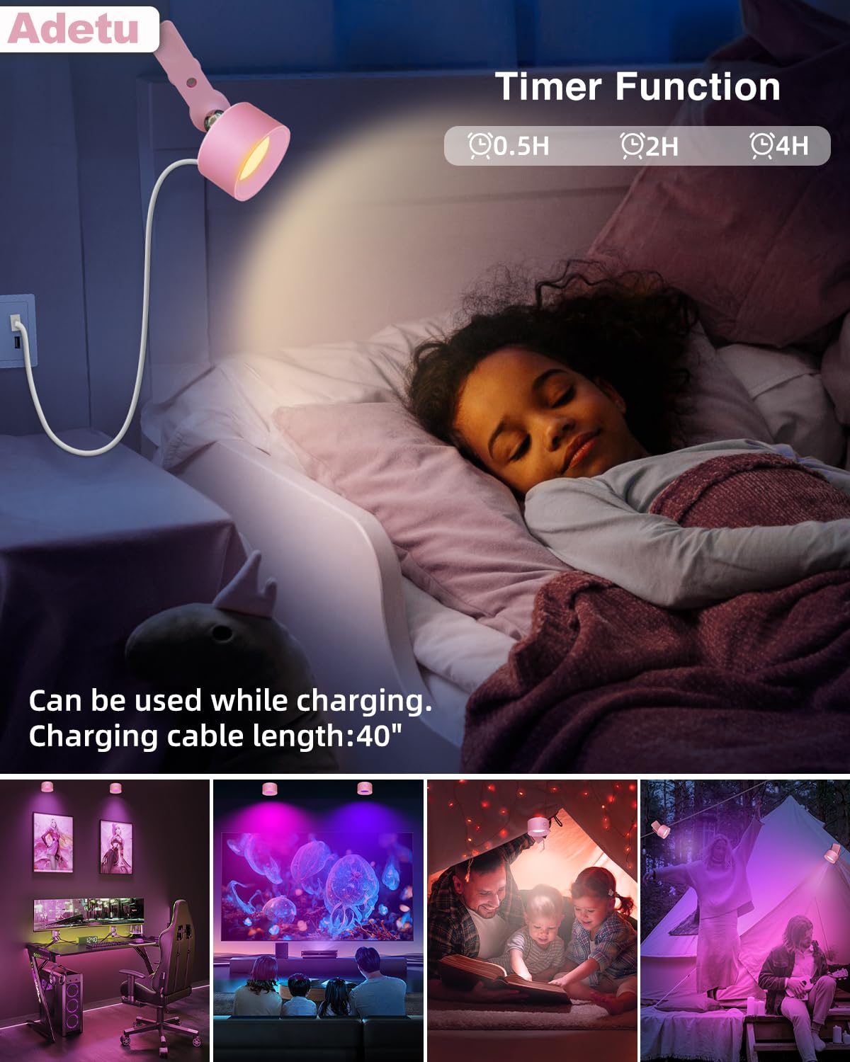 Adetu Led Wall Mounted Lights, Usb Rechargeable Wall Sconces Lamp, 3 Color Temps & Remote, Magnetic Clamp Light 360 Rotation Dim