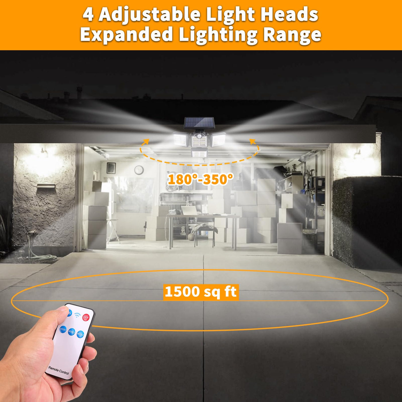Adgustar Solar Outdoor Light With Lights Reflector Motion Sensor Ip65 Waterproof Remote Control 4 Heads 270° Wide Angle Solar Powered Wall Flood Lights With Integrated Panel For Garden Patio Yard