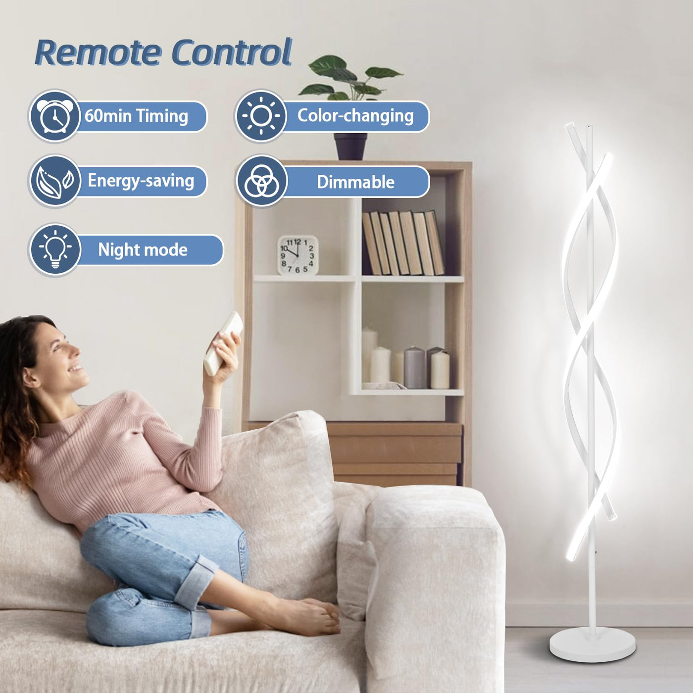 Q: How does the remote control work for this floor lamp?A: The included multi-function remote control allows you to adjust the brightness and change the color temperature of the lamp easily, providing convenience and flexibility in lighting.