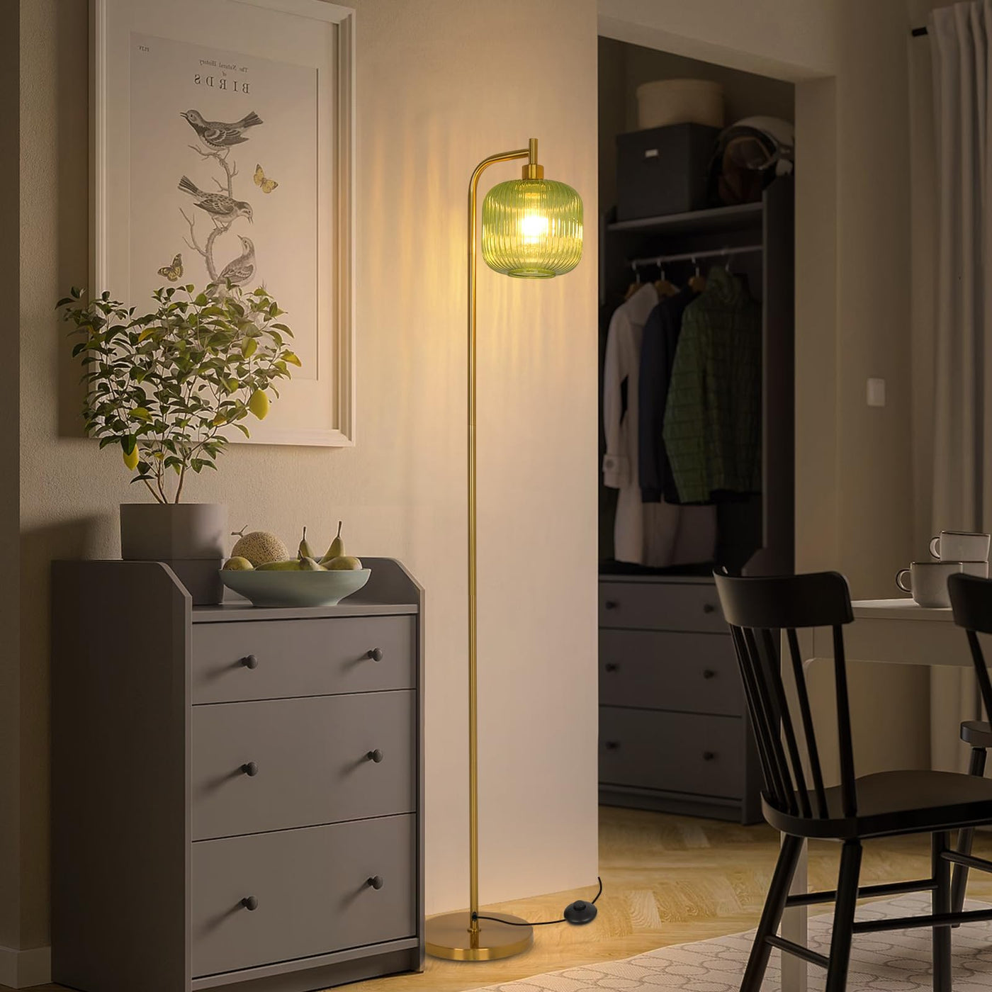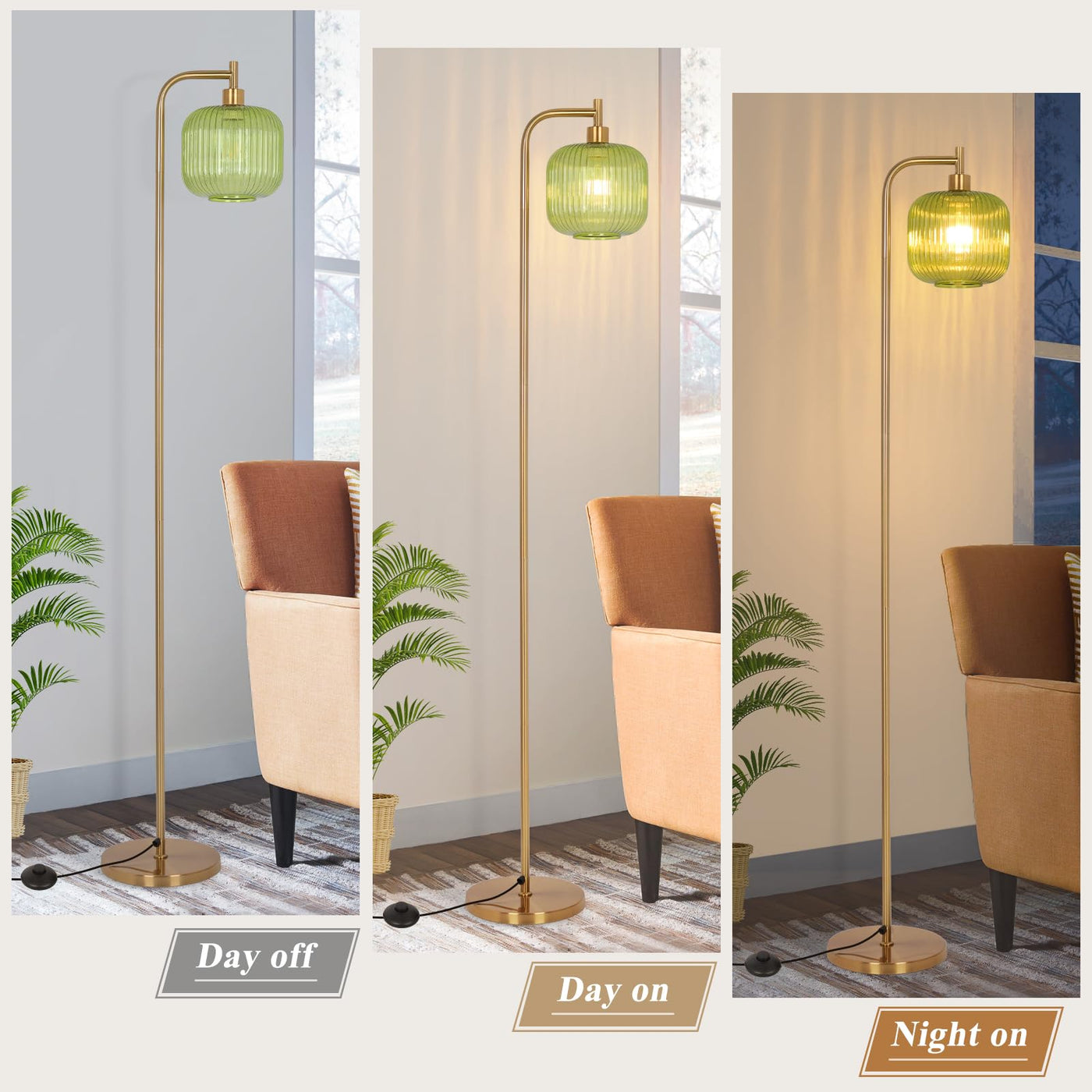 Adisun Glass Floor Lamp For Living Room, Modern Floor Lamp Ribbed Glass Lampshade Pedal Switch, Tall Lamp For Bedroom Study Room