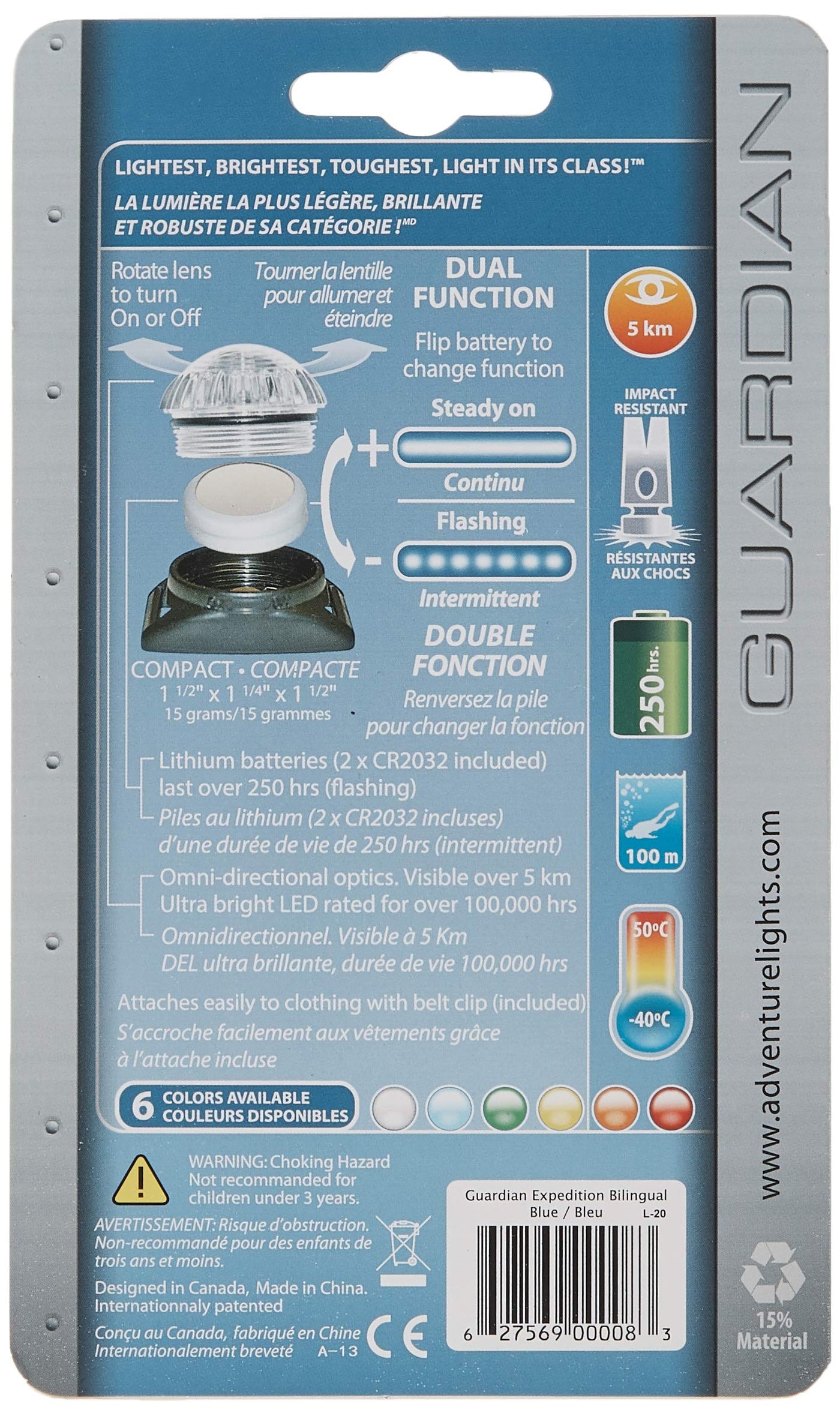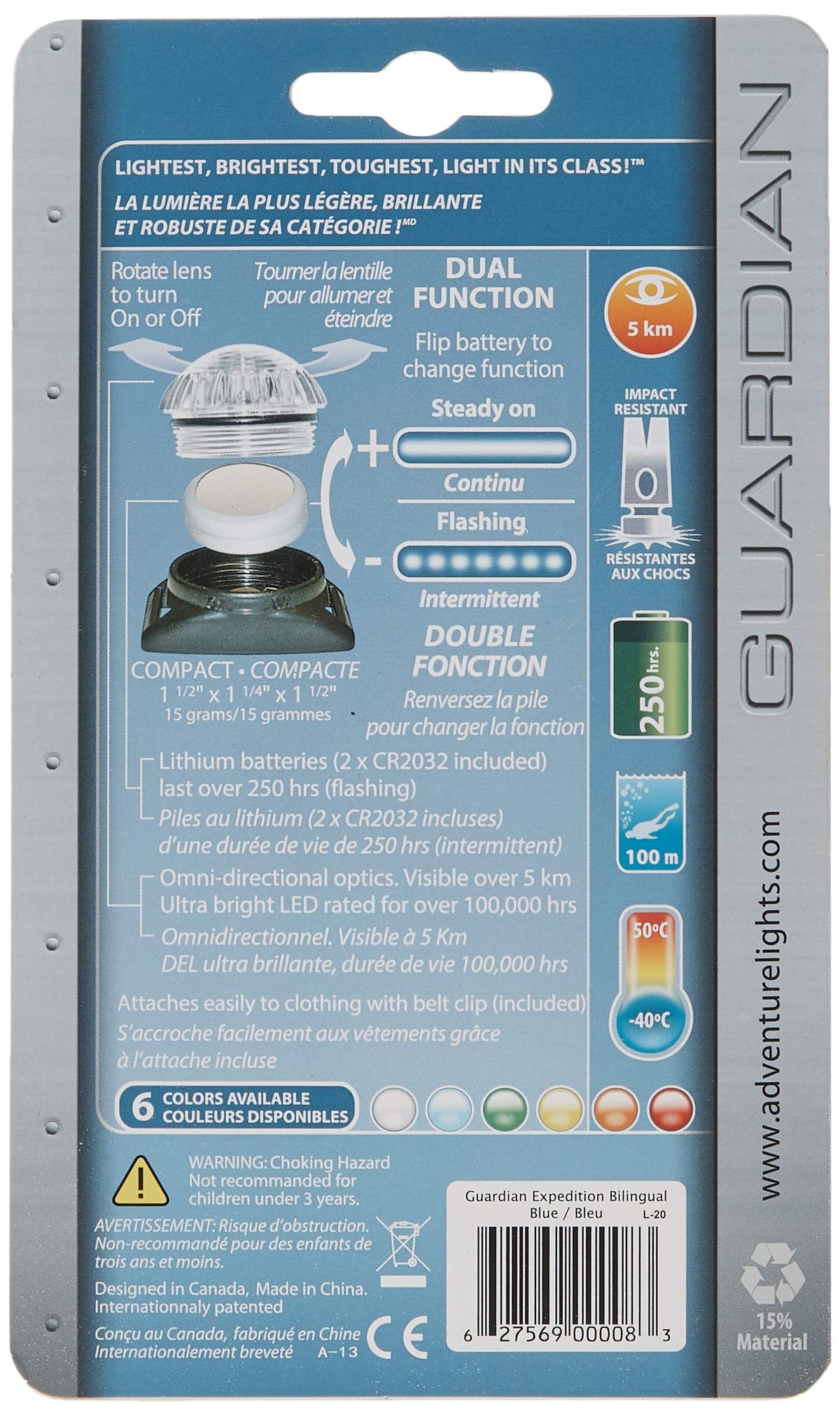 Q: Is the Adventure Lights Guardian Expedition easy to use?A: Absolutely! The Adventure Lights Guardian Expedition features an easy on/off mechanism and has two settings: steady-on and flashing, allowing for quick adjustments based on your needs.