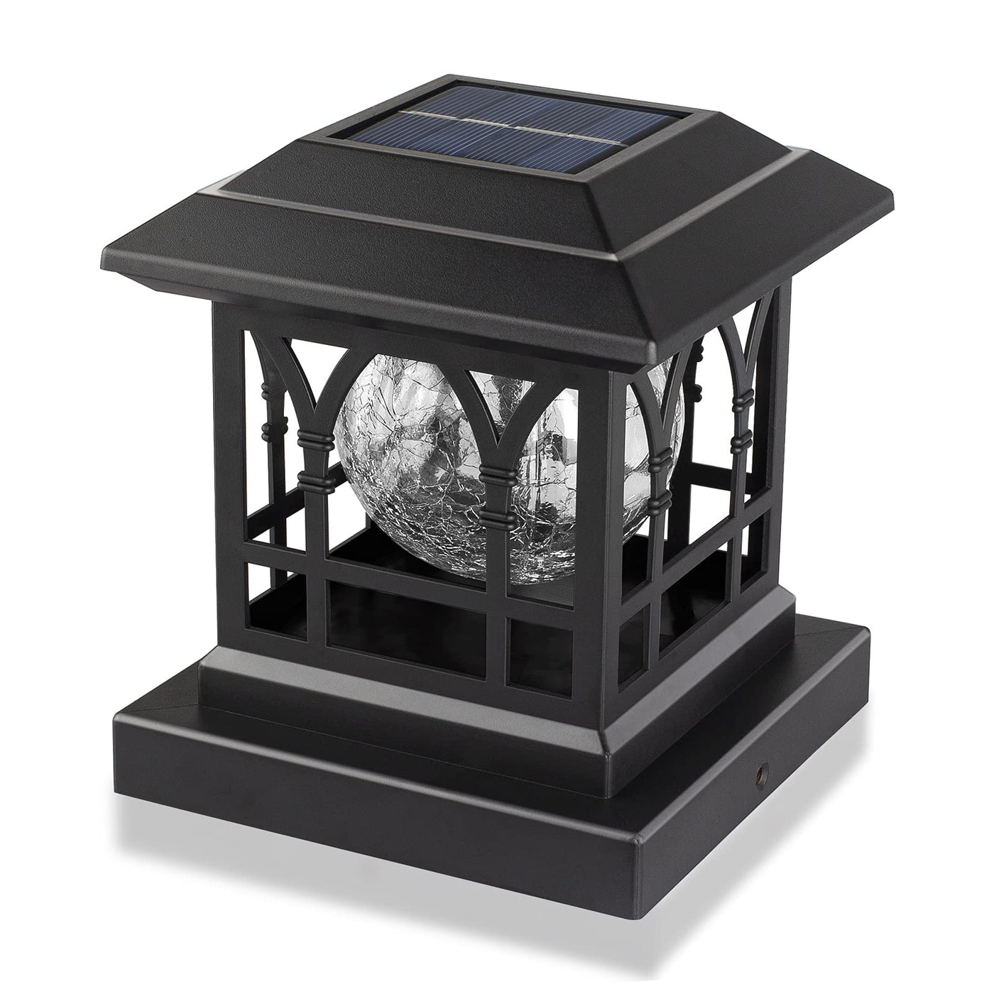 Aefreleoht Solar Post Cap Lights, Warm White & Rgb Automatic Cycling, Cracked Glass Bulb, 20 Lumens Lp65 Waterproof Fit 3.6X3.6 4X4 4.5X4.5 5X5 Wood Fence Post Solar Powered Lights Black (1 Pack)