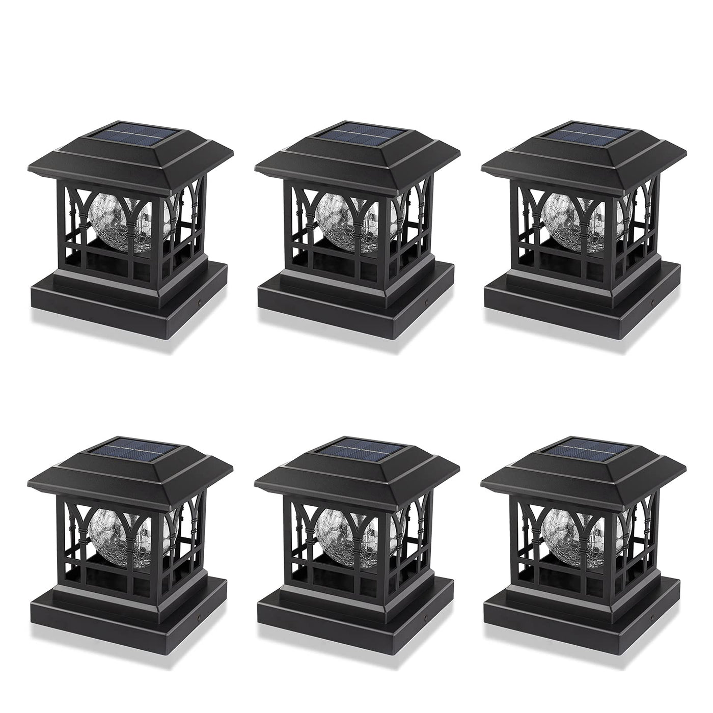Aefreleoht Solar Post Cap Lights, Warm White & Rgb Automatic Cycling, Cracked Glass Bulb, 20 Lumens Lp65 Waterproof Fit 3.6X3.6 4X4 4.5X4.5 5X5 Wood Fence Post Solar Powered Lights Black (6 Pack)