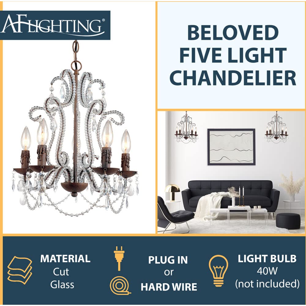 Elevate your interior design with the AF Lighting 5195-5H Beloved Mini Chandelier that combines timeless elegance with modern convenience. Perfect for both residential and commercial spaces, it's sure to be a focal point in any room. Whether you are redesigning your home or looking to make a lasting impression in your office, this chandelier is the perfect choice for illuminating your space with style.