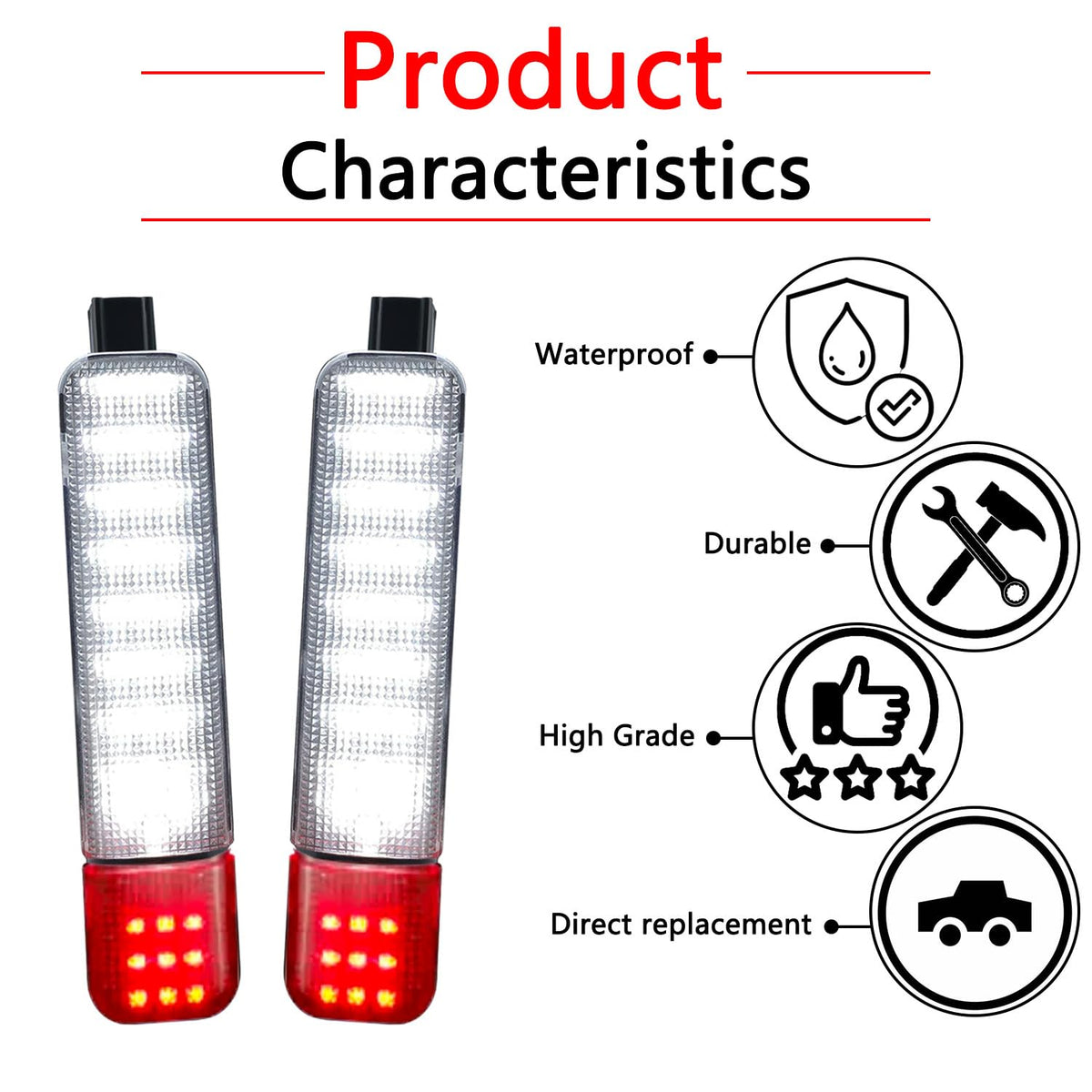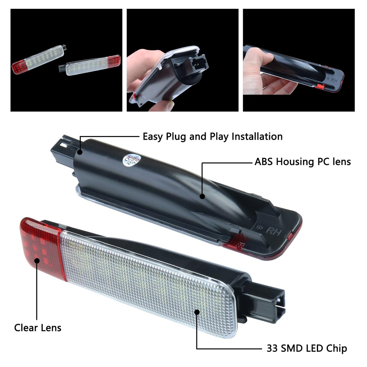 Q: What materials are used in the construction of the AFEISOL Led Side Door Panel Lights?A: The AFEISOL Led Side Door Panel Lights are constructed from high-quality ABS plastic housing and a PC lens, ensuring durability and reliability. They also feature a three-layer coating for additional protection.