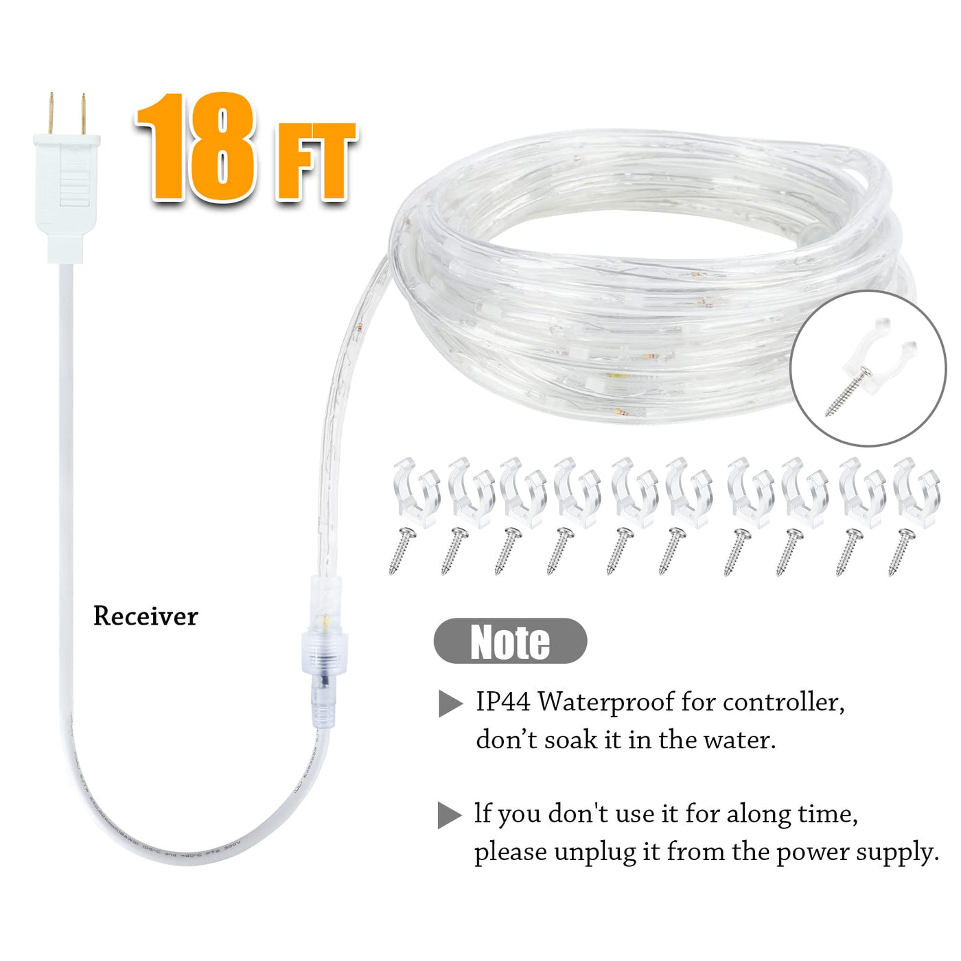- **Linkable & Flexible**: These extendable lights feature a coaxial connector that allows you to connect up to 180FT of lights, providing flexibility in your design. The flat shape and bendable design make it easy to wrap around staircases, balconies, and other decorative areas, meeting all your lighting needs with ease.
