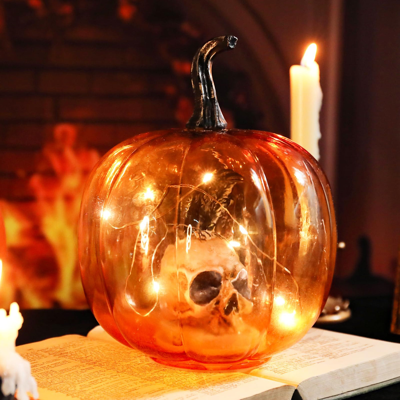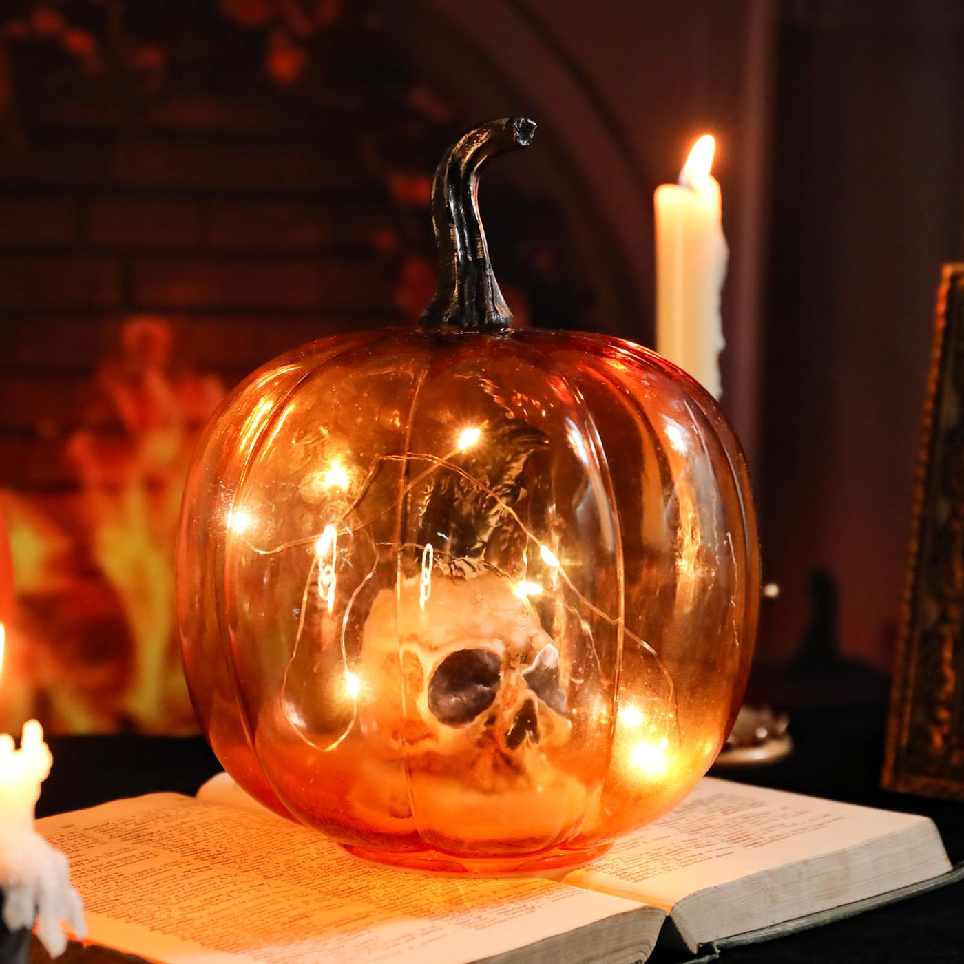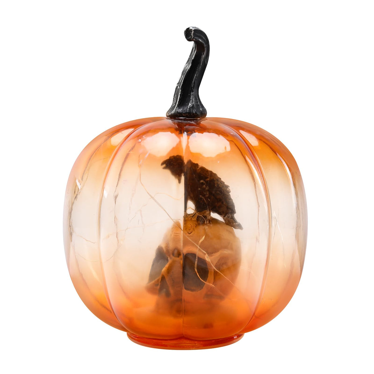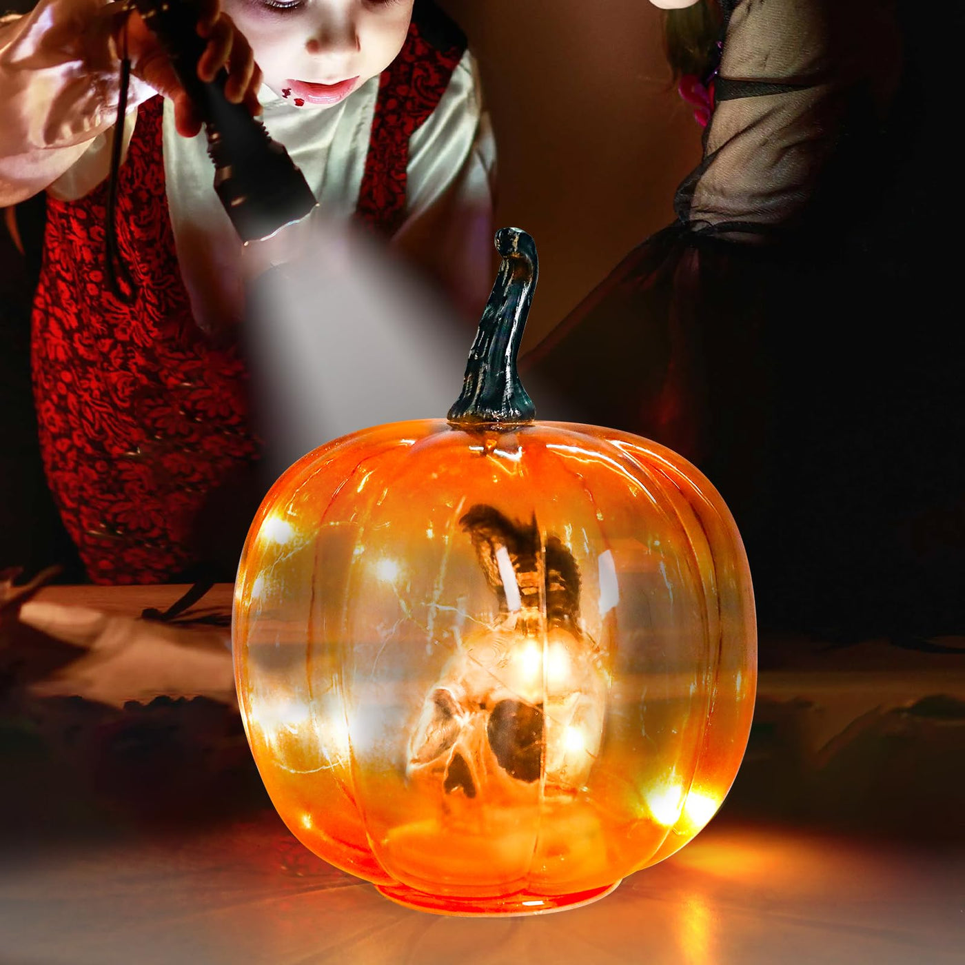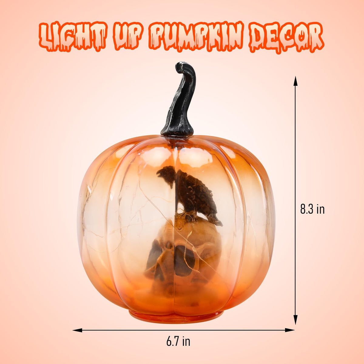 Afirst Halloween Decorations Indoor Lighted Halloween Fall Pumpkins Illuminated Glass Pumpkin With Skull Crow For Thanksgiving Fireplace Tabletop Party Home Bedroom Decor Gift