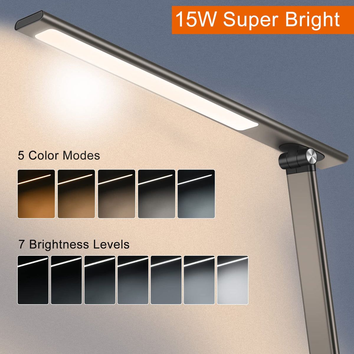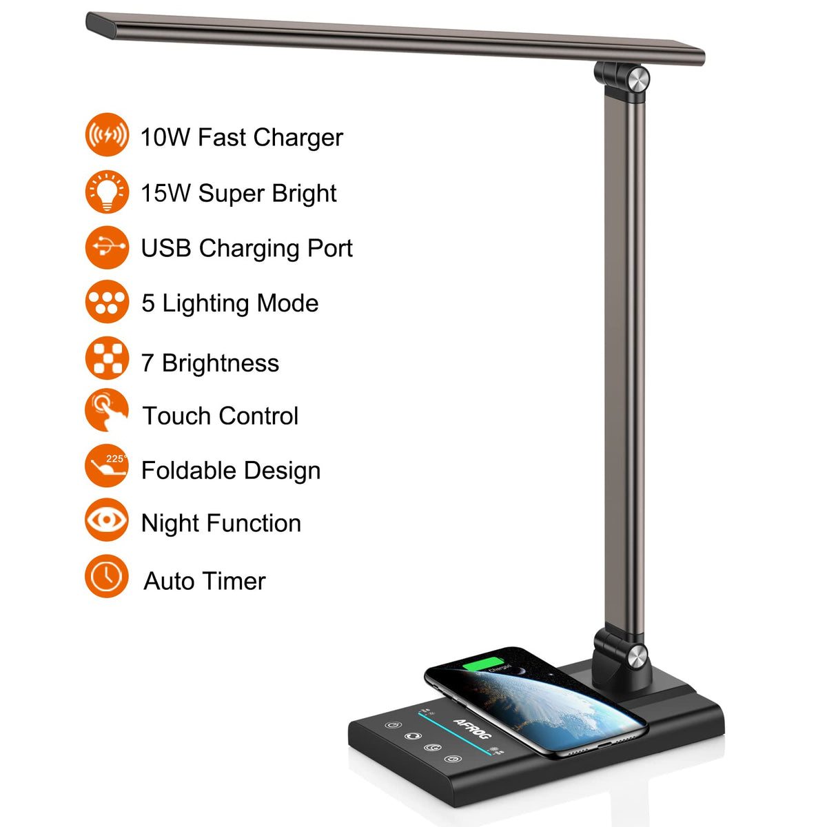 Afrog 5Th Gen Multifunctional Led Desk Lamp With 10W Fast Wireless Charger, Usb Charging Port,1800Lux Super Bright,5 Lighting Mode,7 Brightness, Touch Control, Auto Timer, 15W Office Table Lamp