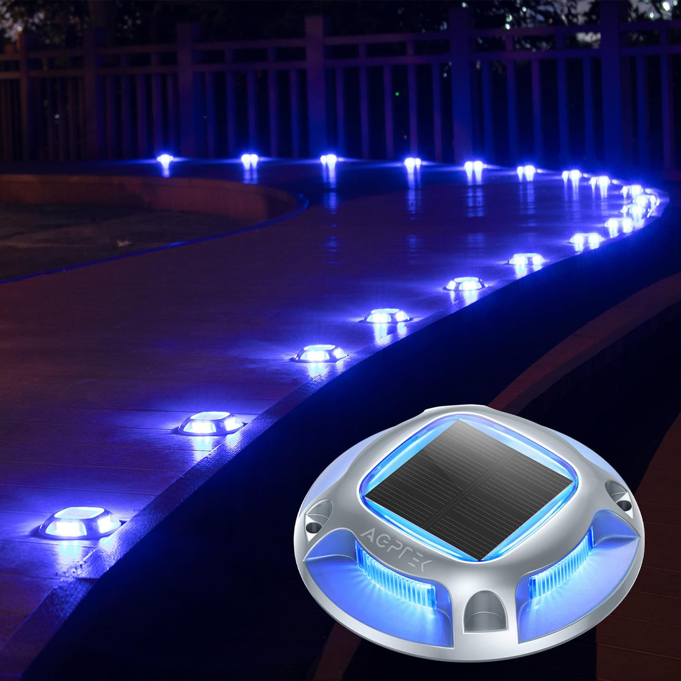 Q: What are the color options for the AGPTEK Solar Driveway Lights?A: The AGPTEK Solar Driveway Lights offer two color modes: blue light and cool white, allowing you to choose the perfect lighting for your driveway or garden.