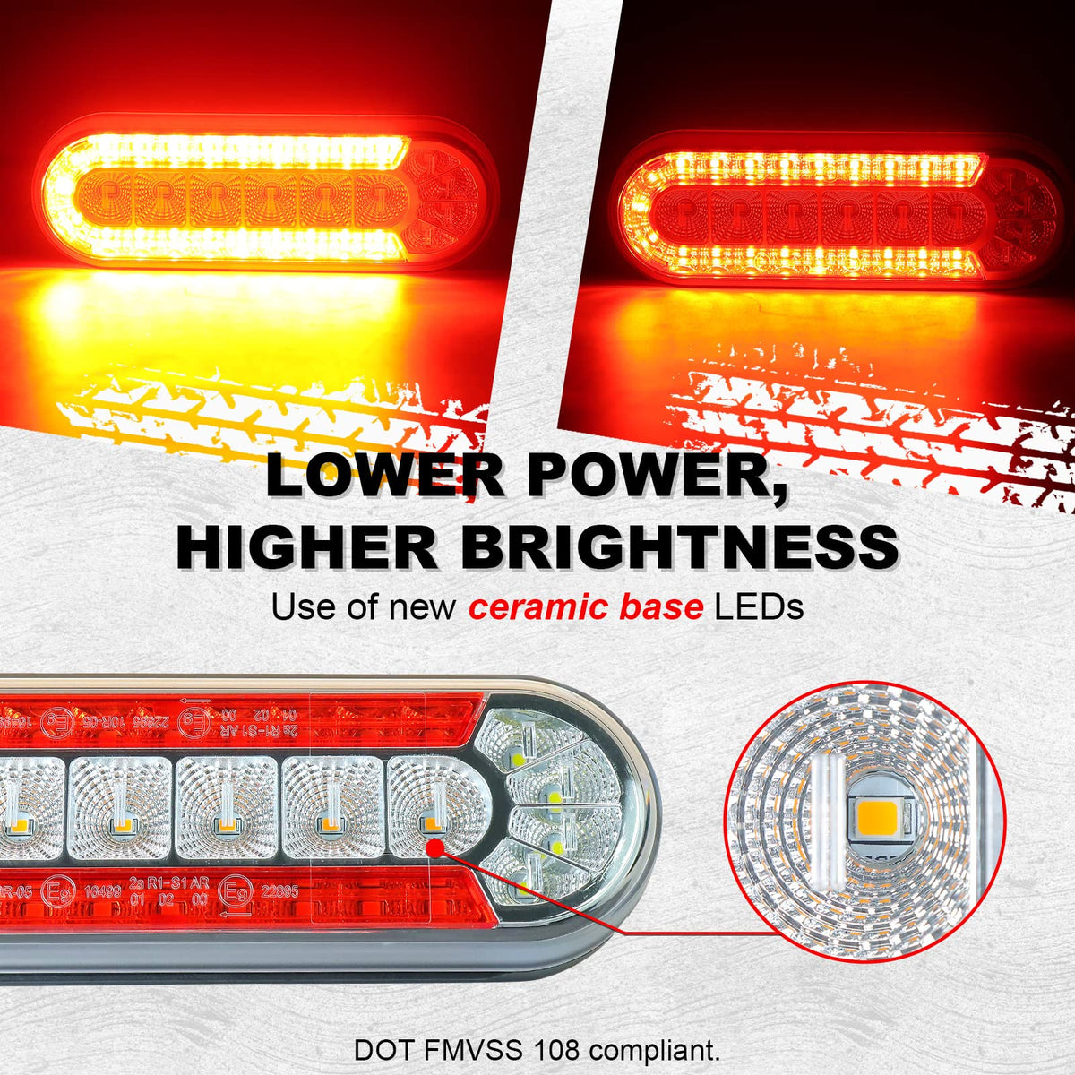 Agrieyes 6 Inch Oval LED Trailer Lights - Submersible Boat Light with Brake, Turn, Reverse & Backup Signal, DOT Compliant, Red/White/Yellow