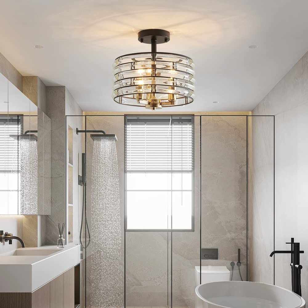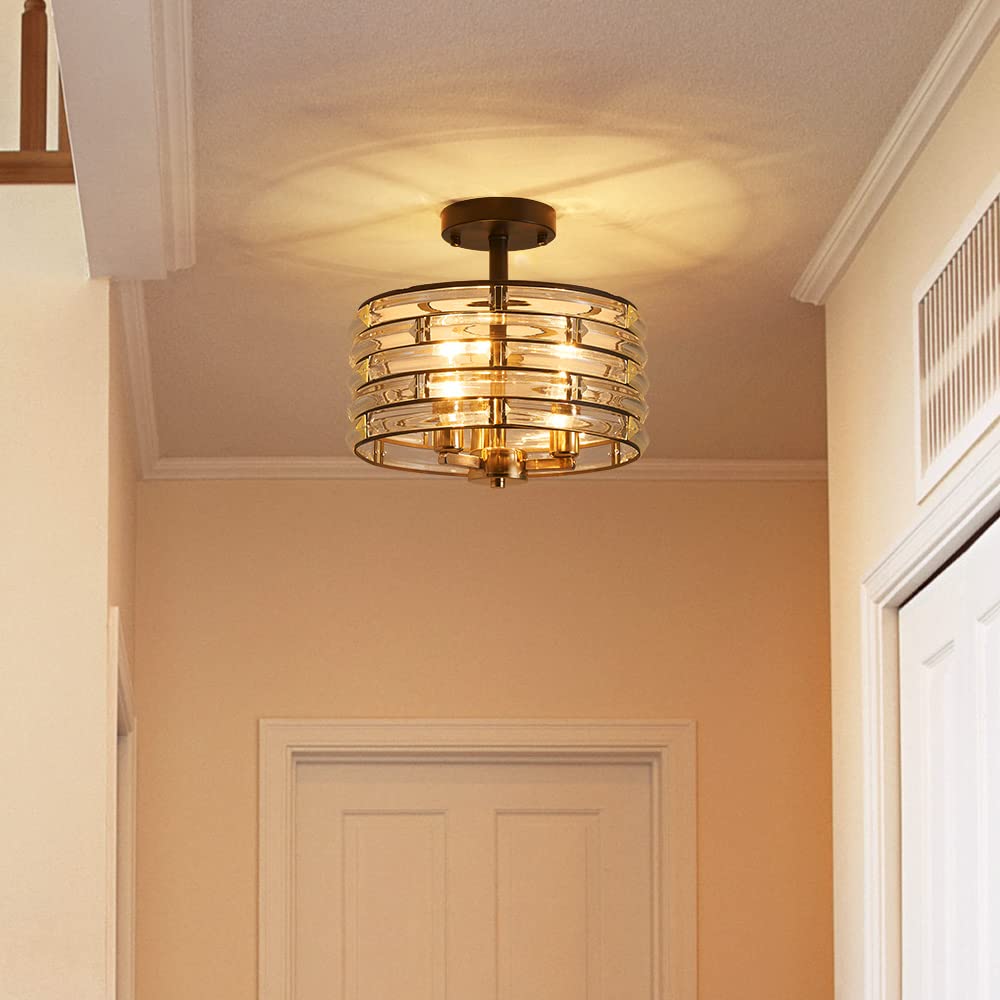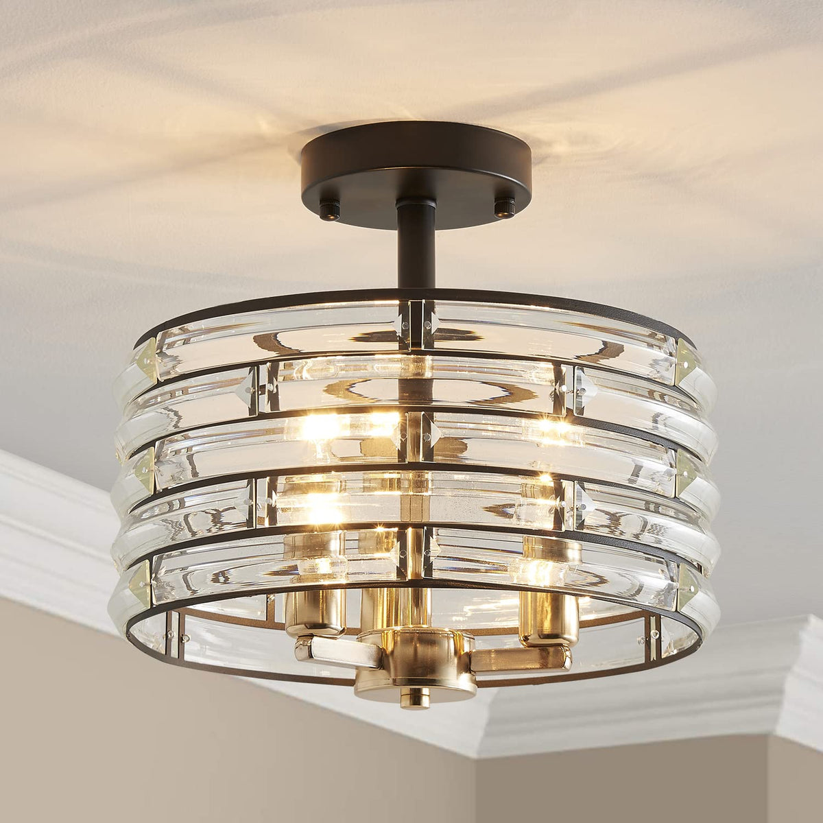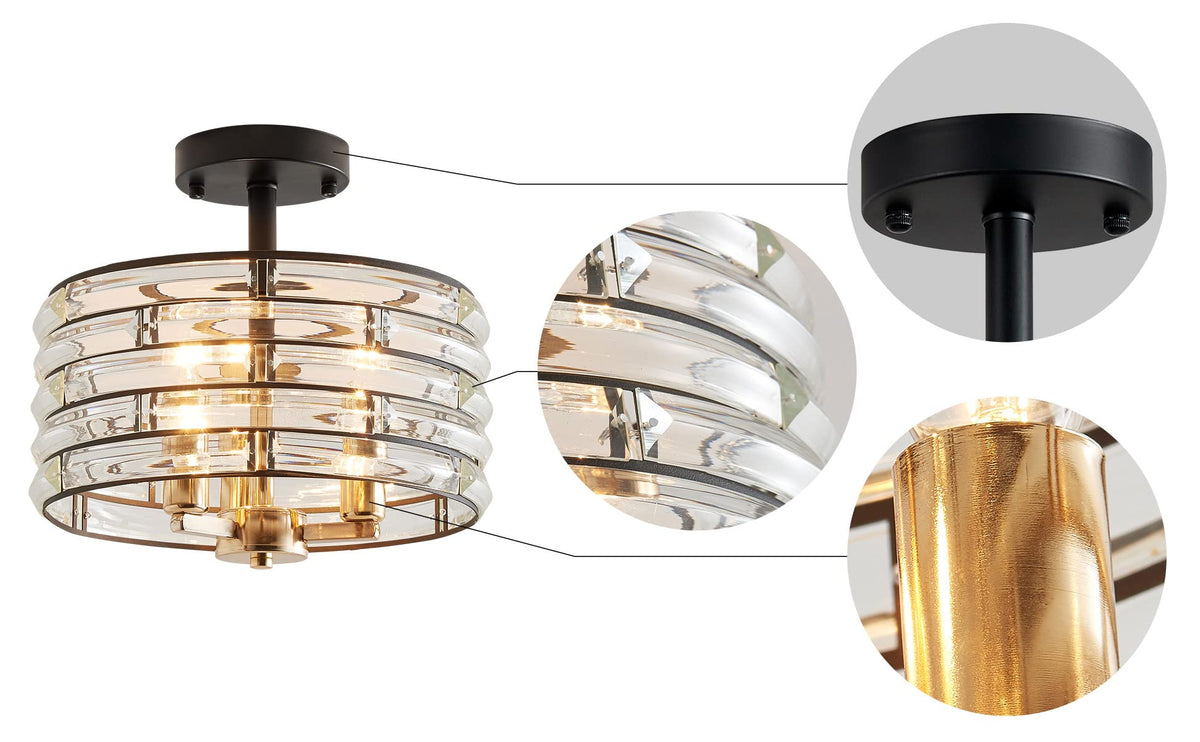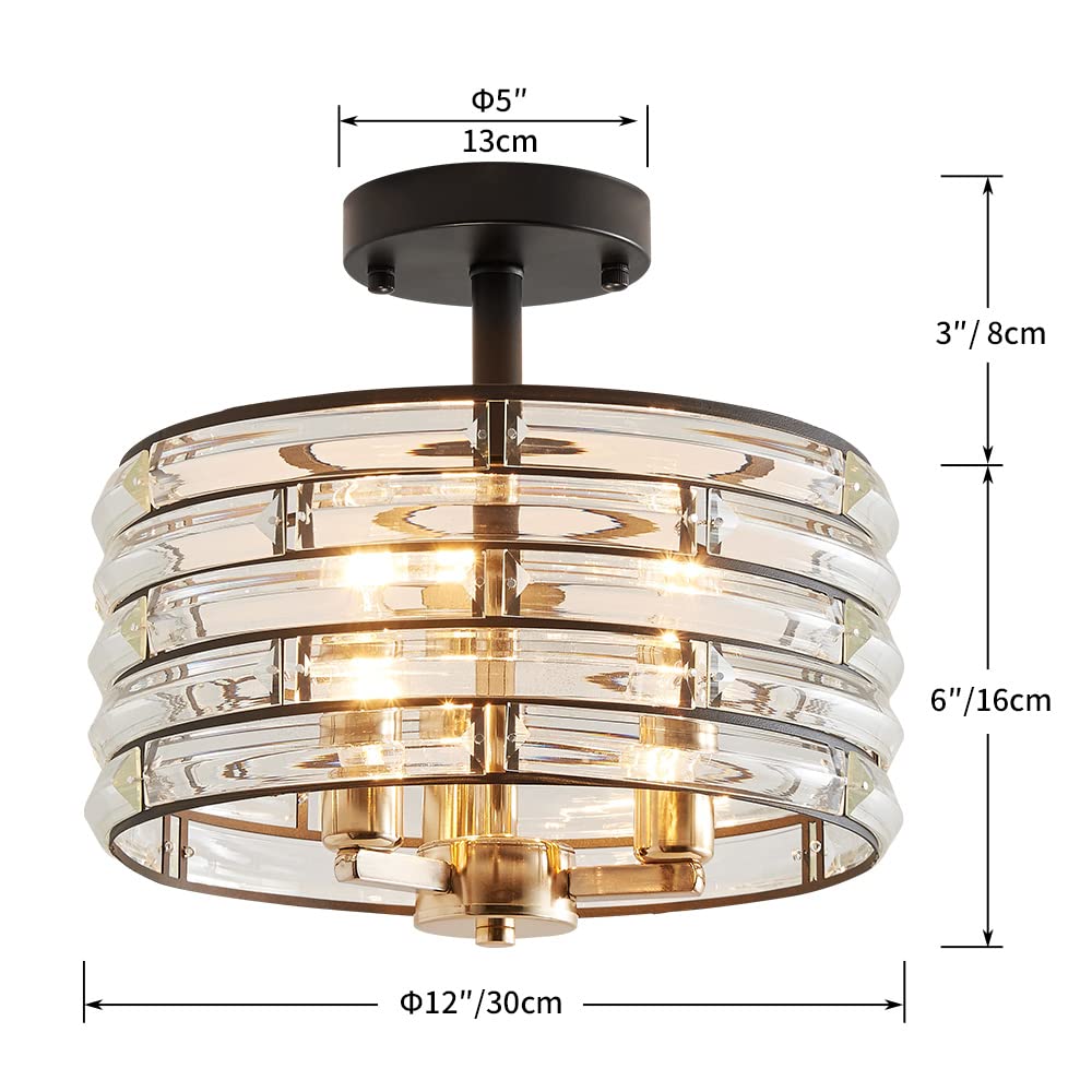 Agv Lighting Ch015Bb Crystal Semi Flush Mount Ceiling Light Fixture, E12 Base 3-Lights, D12 X H 9'', Crystal Lamp Shade, Light G