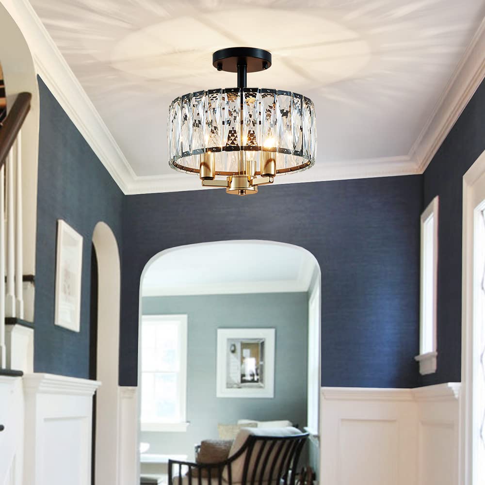 Agv Lighting Cl003Bb K9 Crystal Ceiling Light Fixture, Modern Semi Flush Ceiling Lights, Perfect For Living Room, Bedroom, Dinin