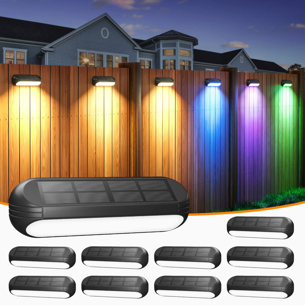 Q: What are the lighting modes available in AHAORIGIN solar fence lights?A: The AHAORIGIN solar fence lights feature two versatile lighting modes: a color-changing mode for festive occasions and a warm white mode for daily illumination.