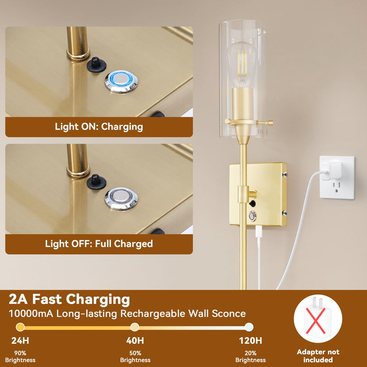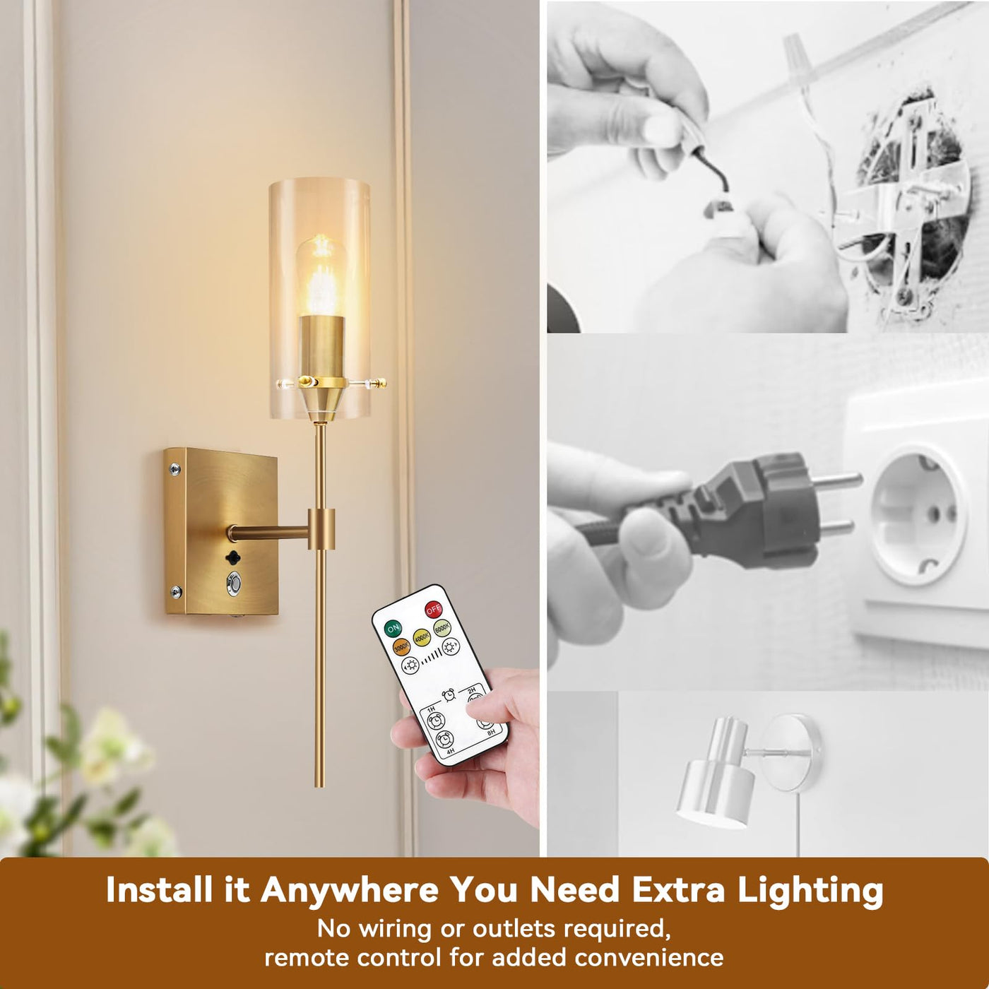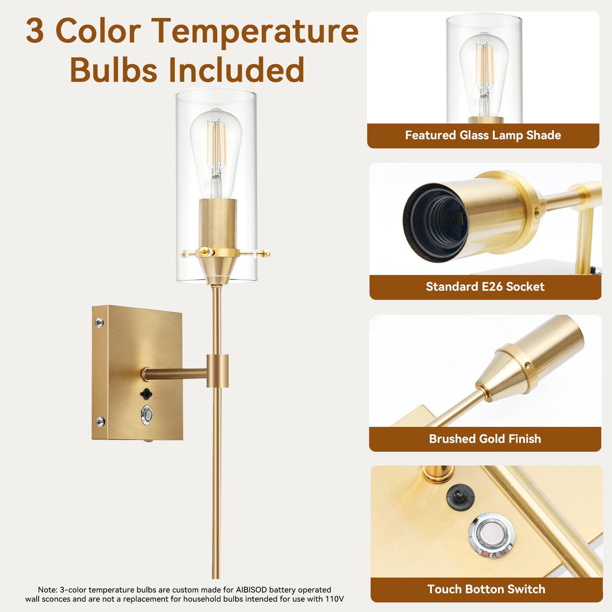 1. USB Rechargeable wireless sconces: AIBISOD wireless wall light battery powered wireless wall sconce with 2 PCS 3 Color temperature bulbs,our wireless sconces set of 2 rechargeable redefine convenience with their easy installation, no drilling or wiring required. (rechargeable wall sconces non hardwiredfixture) 2. wireless sconces set of 2 rechargeable with Remote Control: Newly upgraded rechargeable wall lights with 3 Color temperature wall light provides 3 color modes for your choice; 3 color temperature modes: warm light 3000K, neutral light 4500K, white light 6000K, rechargeable wall sconces can adjustable brightness 10%~100%. 3. Wireless Wall Sconces Easy to Install: Indoor battery operated wall light with USB rechargeable bulb design, easy to charge, rechargeable wall sconces set of 2, no wiring or professional electrician installation required. battery operated wall sconce Includes instructions and all mounting hardware for quick and easy installation in your desired location. 4. Saving you from high electric bills and the hassle of changing bulbs frequently, these wall sconces battery operated can also be used as emergency lighting in the event of a power outage.