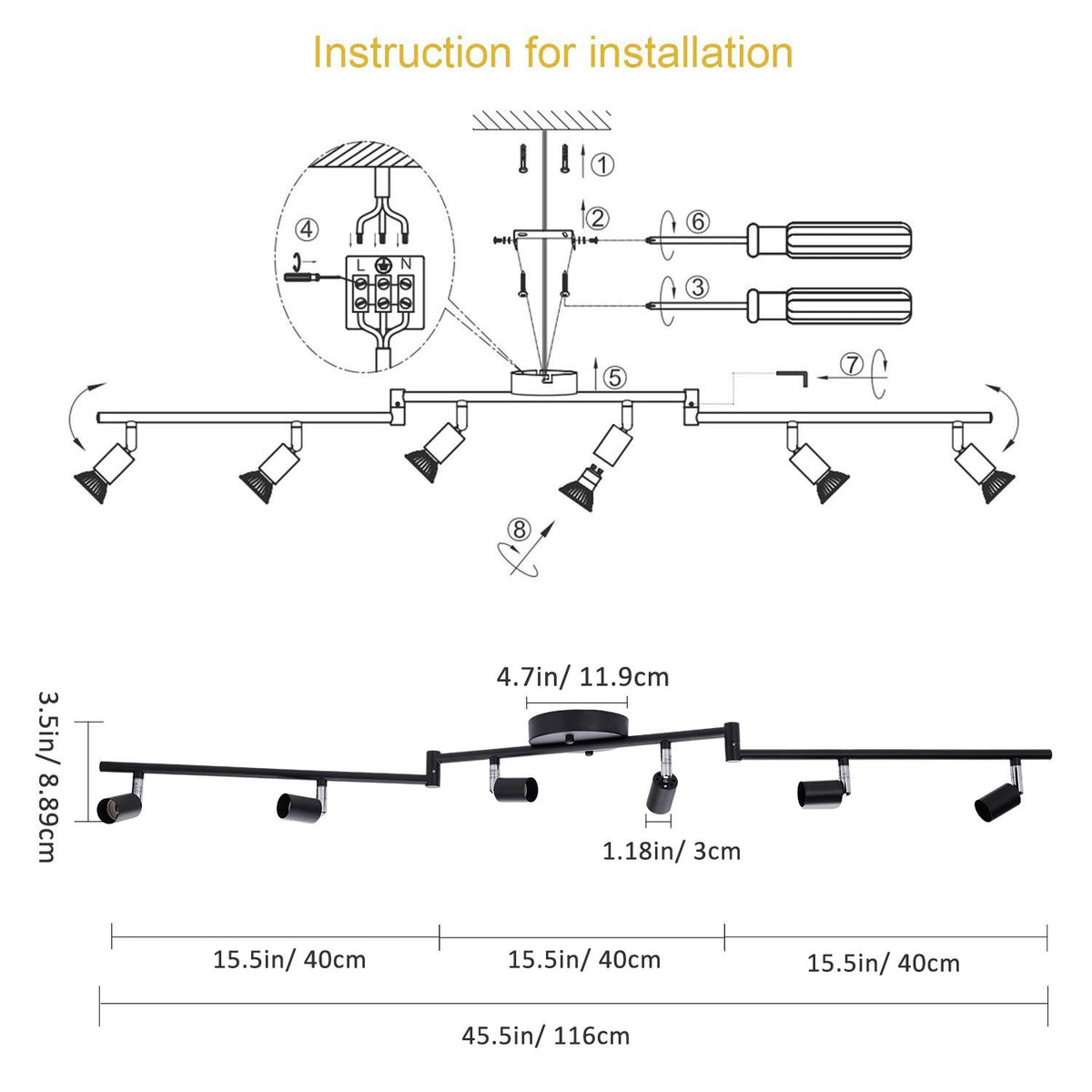 1> High quality: made of metal body, the tracking lights led fixture's working time lasted longer, sturdy and durable. 2>Dimmable: The track lights fixture fit for dimmable bulbs and wall dimmer switch, so that you can dimming the color to meet different needs. 3>Flexible tracking lighting kit: Including 6 track head and 3 arms, you can easily adjust to various shapes and then focus the lights to the suitable direction,as there is no blubs supplied, so you can mounting any traditional bulbs or LED bulbs in warm white or cold white, no limited, please remember each bulb not exceed with 50W. package and Warranty: