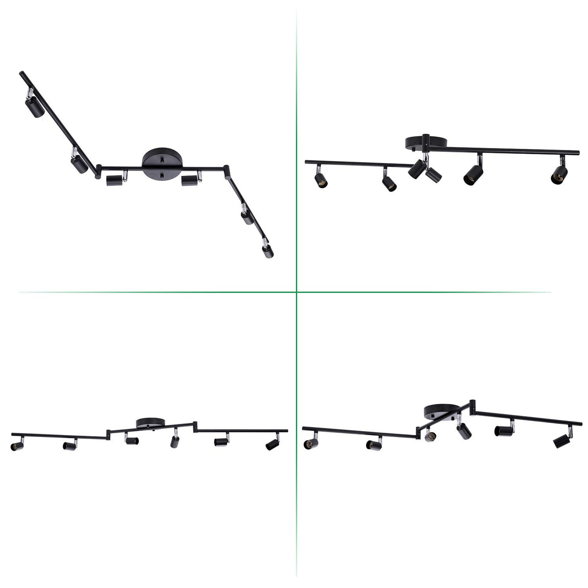 Aiboo 6-Light Adjustable Dimmable Track Lighting Kit, Flexible Foldable Arms, Matt Black Color Perfect For Kitchen,Hallyway Bed Room Lighting Fixture, Gu10 Base Bulbs Not Included