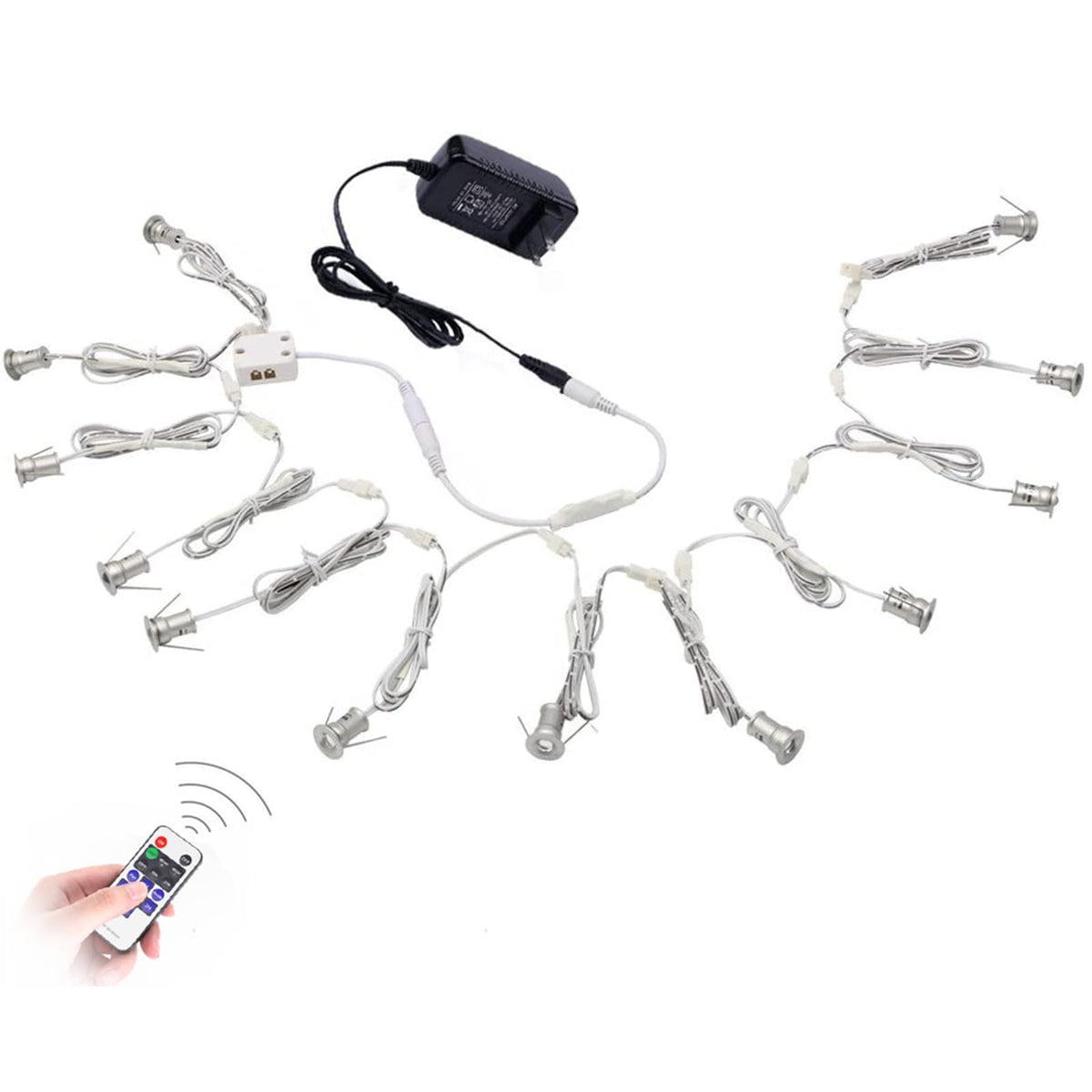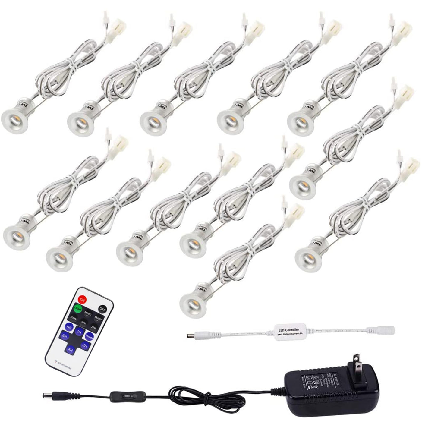 Aiboo Linkable Led Under Cabinet Lighting 12V Recessed Mini Downlights Spotlights Dimmable With Remote Control & Etl Listed Wall Plug For Cupboard Accent Lighting(Warm White,12 Lights)