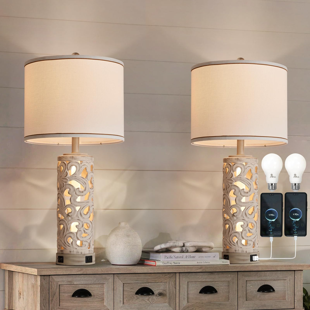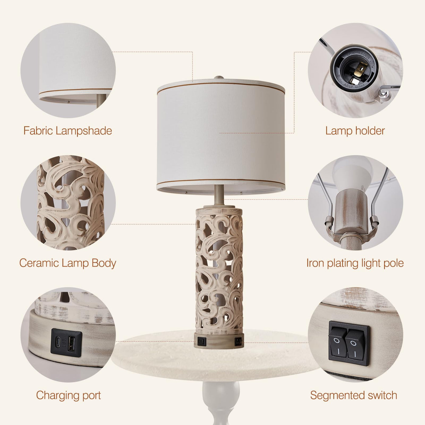 Aidenoey 28" Farmhouse Table Lamps Set Of 2 With Usb Ports & Night Light, White Ceramic