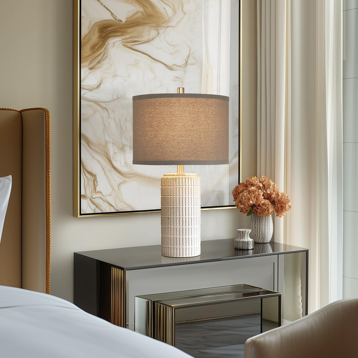 The Aieampdo Table Lamp Is Just What You Need! The Ceramic Lamp Base Of This Table Lamp Is Covered With A Delicate Striped Grid Texture That Is Not Only Delicate To The Touch, But Also Adds A Modern Touch. The Decorative Detail On The Top Brings A Touch Of Luxury And Warmth To Your Interior Space,Bringing A Cozy Atmosphere To Your Living Room, Bedroom Or Study. Multiple Advanced Features The Rotary Switch On The Head Of Our Bedroom Lamp Is Suitable For People Of All Ages, And The Non-Slip Pad On The Bottom Of The Lamp Base Prevents The Lamp From Sliding And Tipping Over, Keeping The Light Set Stable. The Package Also Includes 2 Energy-Saving Led Bulbs, Saving You The Trouble Of Buying Compatible Bulbs Separately. Super Easy To Install All The Accessories Of Our Package Are Included For Your Quick Installation, Follow The Manual, Just A Few Steps, You Can Get An Excellent Table Lamp Set In Seconds, Save Time And Hassle. This Table Lamp Is Ideal For Your Home Decoration, Add A Touch Of Warmth And Elegance To Your Home.
