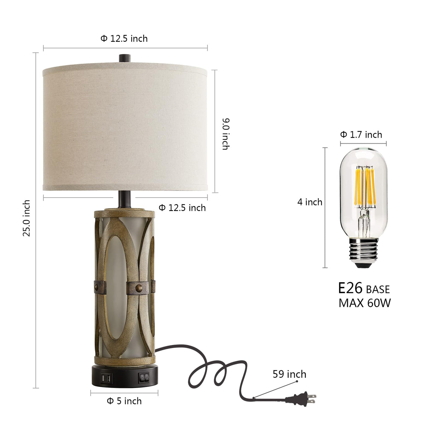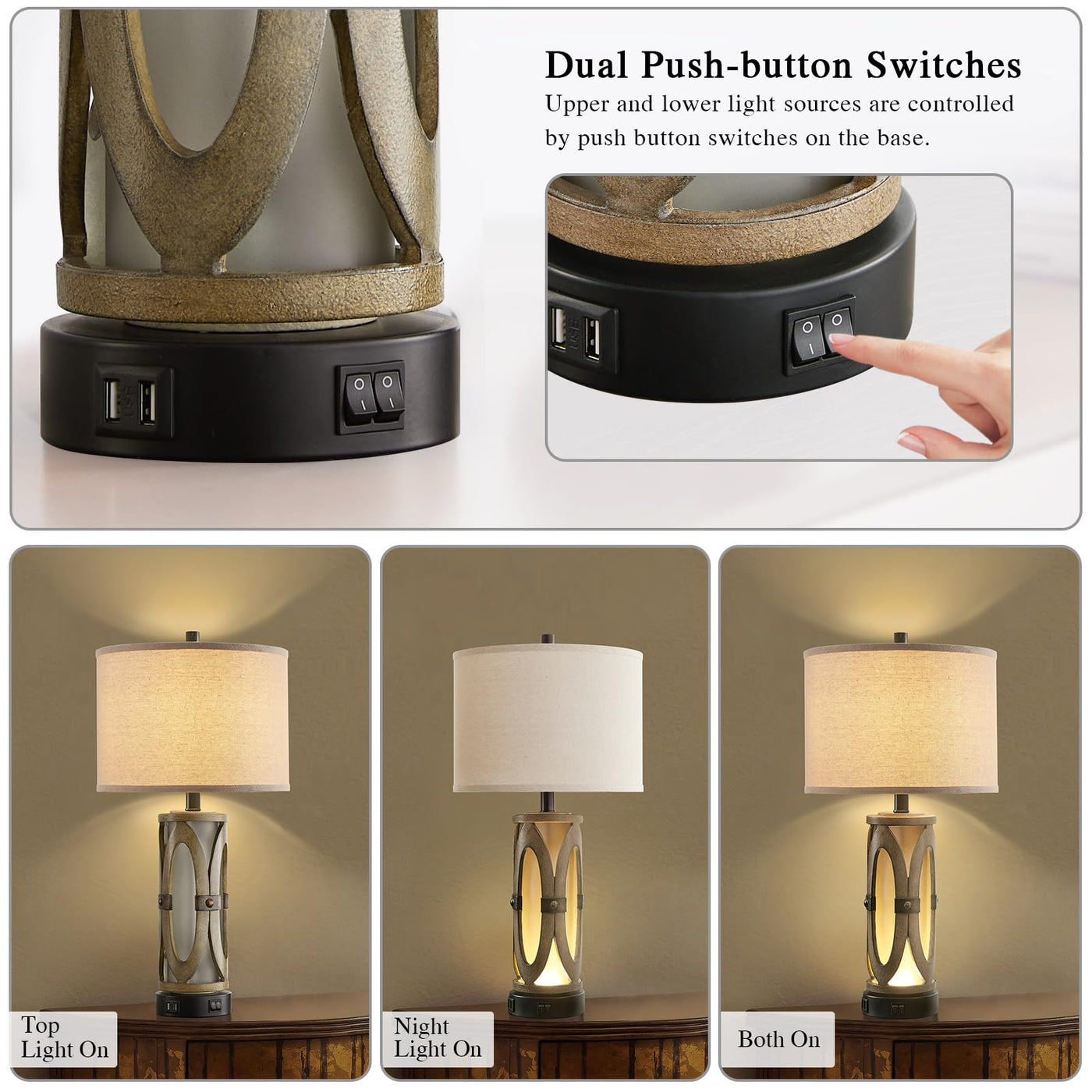 Aieampdo Table Lamps Are Exactly What You Need! This Farmhouse Table Lamp Features A Unique Design With A Design That Focuses On A Vintage And Classic Feel, Making It The Addition To Any Room With A Vintage, Industrial, Or Rustic Theme. The Gray Glass Night Light Is Covered In Resin With A Leaf-Shaped Openwork Pattern And Paired With A Natural Linen Shade That Highlights The Elegance And Rusticity Of This Table Lamp. These Retro Table Lamps Can Add Charm To Any Room And Are A Great Accent To Home Decor. Multiple Advanced Function Comes With A Two-Button Switch And Two Usb Charging Ports For Easy Control Of Lights And Charging Devices. It Also Comes With 2 Led Bulbs, Eliminating The Need To Purchase Compatible Bulbs And Creating A Comfortable Shopping Experience. The Lamp Comes With Two Light Sources, Both Of Which Can Be Illuminated By The Two On/Off Buttons On The Lamp. You Can Click The Buttons To Turn On The Top Light Or The Bottom Light, Or You Can Choose To Turn Both On Or All Off. Premium Quality&Stable Construction Being High-Quality, Our Table Lamp Sets Are Constructed With Premium Resin Base. With Advanced Non-Slip Mat, The Lamp Sets Are Super Stable And Safe To Use. Super Easy Installation All Accessories Are Included For Your Quick Installation, Follow The Manual, It Only Takes Few Steps For You To Get A Great Table Lamp Sets In Few Seconds, Saving Much Time And Trouble.
