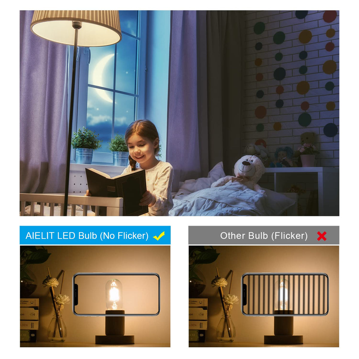 We Are Always Looking For The Edison Led Light Bulbs Dimmable With Flicker-Free, Especially Those That Seem To Offer A Better Way Of Combining Vintage Elegance With The Durability, Versatility And Functionality Needed For Chandeliers, Wall Sconces, Pendant Lighting Or Home Decoration. This Tube Light Bulb From Aielit Fits That Bill. Aielit T45/T14 Led Filament Tubular Bulb Dimmable: Smoothly From 0 To 100% Base: Screw E26 Medium Base Rated Power: 6W (60W Equivalent) Brightness: 600 Lm Cri (Color Rendering Index): 85+ Color Temperature: Soft White 3000K Lifespan: Average 25000 Hours Input Voltage: Ac 110V - 130V Multi-Application Adopted Newest Led Technology, No Glare, No Flicker, Applied Widely For Ceiling Fan, Chandelier, Wall Scones, Enclosed Fixture, Equivalent Incandescent Lamps, Table/Desk Lamp, And Decorative Lighting, Suitable For All Small E12 Screw Base Fixtures, Perfect For Hallway, Porch, Foyer, Gazebo, Patio, Nightstand, Kitchen, Living Room, Dining Room, Bedroom, Bathroom, Cafe, Bistro, Hotel, Schools, Museum, Supermarkets, Restaurants, Enjoying A Good Moment With The Warm Glow Light. Easy To Screw In. Note: Power Off Before Install. Recommended Dimmers Listcompatible With Lutron: S-600, S-600Pr-Wh, S-603Pgh-Wh, S-600H-Wh, S-10Ph, Scl-153P-Wh, S-600P-Wh, S-600-Iv, S-603Ph-Wh, Scl-153Ph-Wh, Dv-603Pr, Dvwcl-153Ph-Wh, Dvw-600Ph-Wh, Dv-603Ph-Wh, Dv-600Ph-Wh, Dvcl-153Ph, Dv-600P-Wh, Dvcl-253Ph, Dvcl-153P-Whcompatible With Leviton: 6631-La, Light Almond No.6672, 603-6631-A, White No.Ipl06, Ipi06-1Lz, White No.6631Actually, Aielit'S Dimmable Light Bulbs Are Suitable For 98% Of Dimmers On The Market. What You Get Aielit 4-Pack 6-Watt T14 Dimmable Led Filament Bulbs, Our Worry-Free 24-Month Warranty And Friendly Customer Service. Note: Any Quality Issues Or Need Guidance, Pls Email Us. We Will Process And Reply Within 12 Hours.