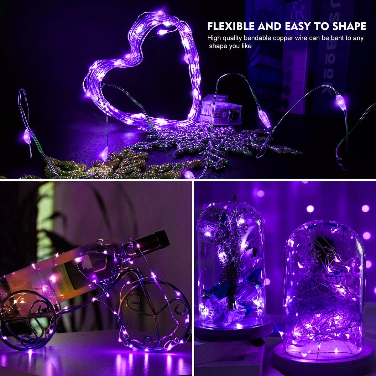 Aikei 24 Pack Led Fairy Lights Battery Operated, String Lights Waterproof 7 Feet 20 Led Firefly Starry Lights For Wedding Party Bedroom Garden Christmas Decoration Purple