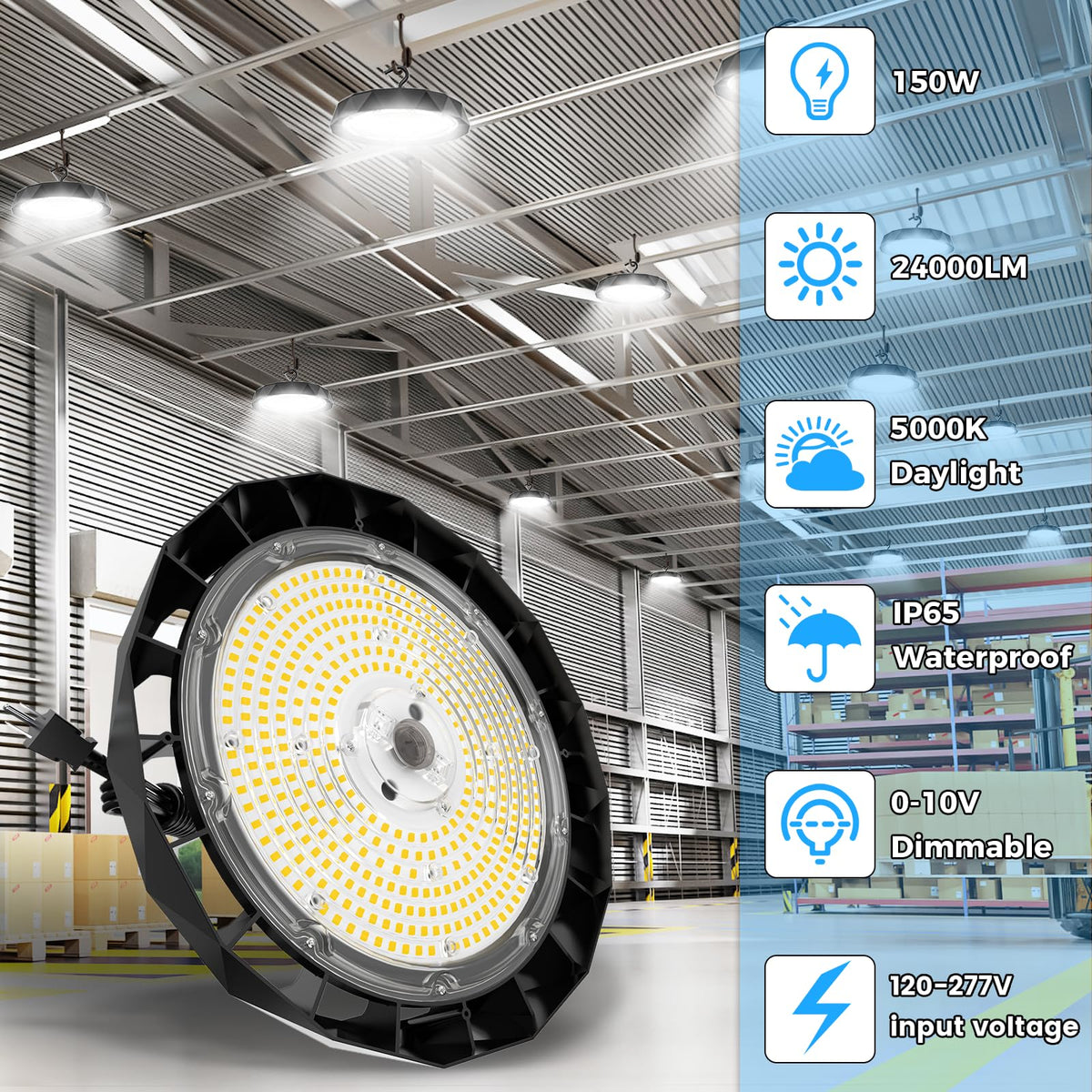 Aikvsxer 150W Ufo Led High Bay Light, 24000Lm, Dimmable, Ip65 For Gym/W