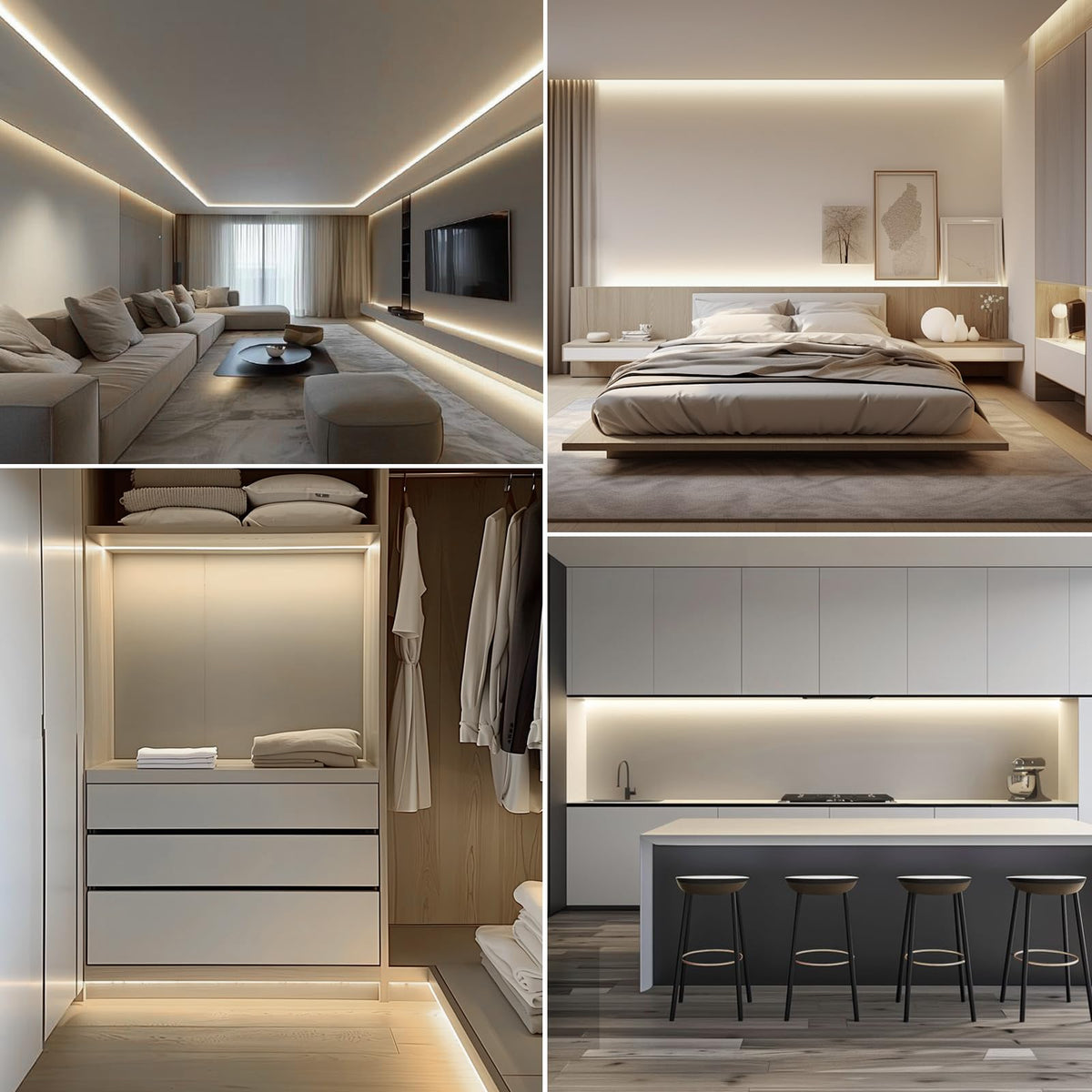 - **Flexible and Cuttable Design**: Easily bend and shape the strip to fit your unique installations. Cut every meter (3.28ft) at designated points for custom lengths, and seal cut ends with insulating tape for safety.
