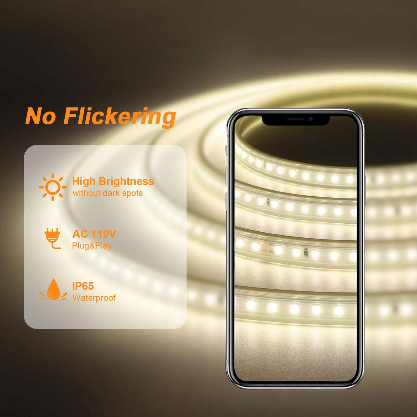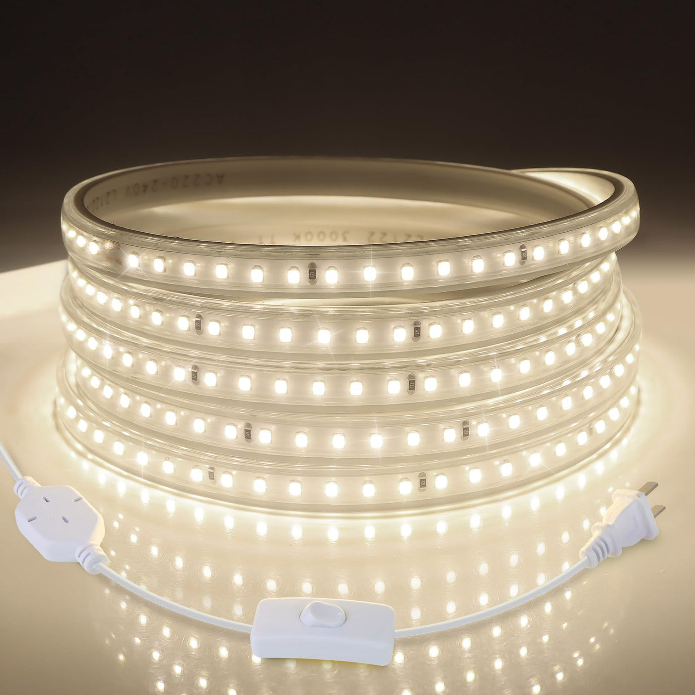 Aimengte Waterproof Outdoor Led Strip Lights, 32.8Ft, 1200 Leds, Daylight, Ac 110V