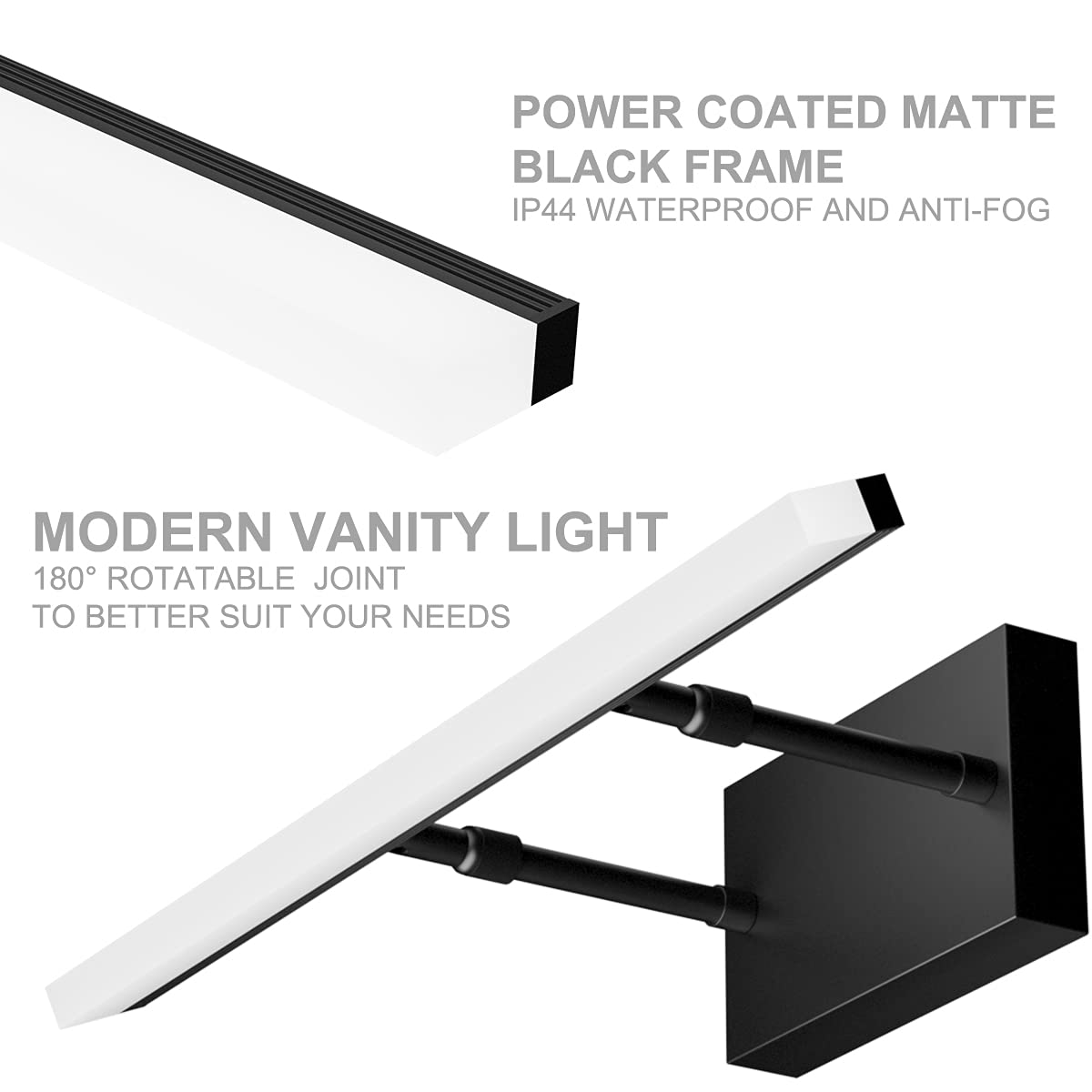 Aipsun 19.7 Inch Modern Black Vanity Light Adjustable Led Bathroom Light Fixture Over Mirror Rotatable Vanity Lighting 5500K
